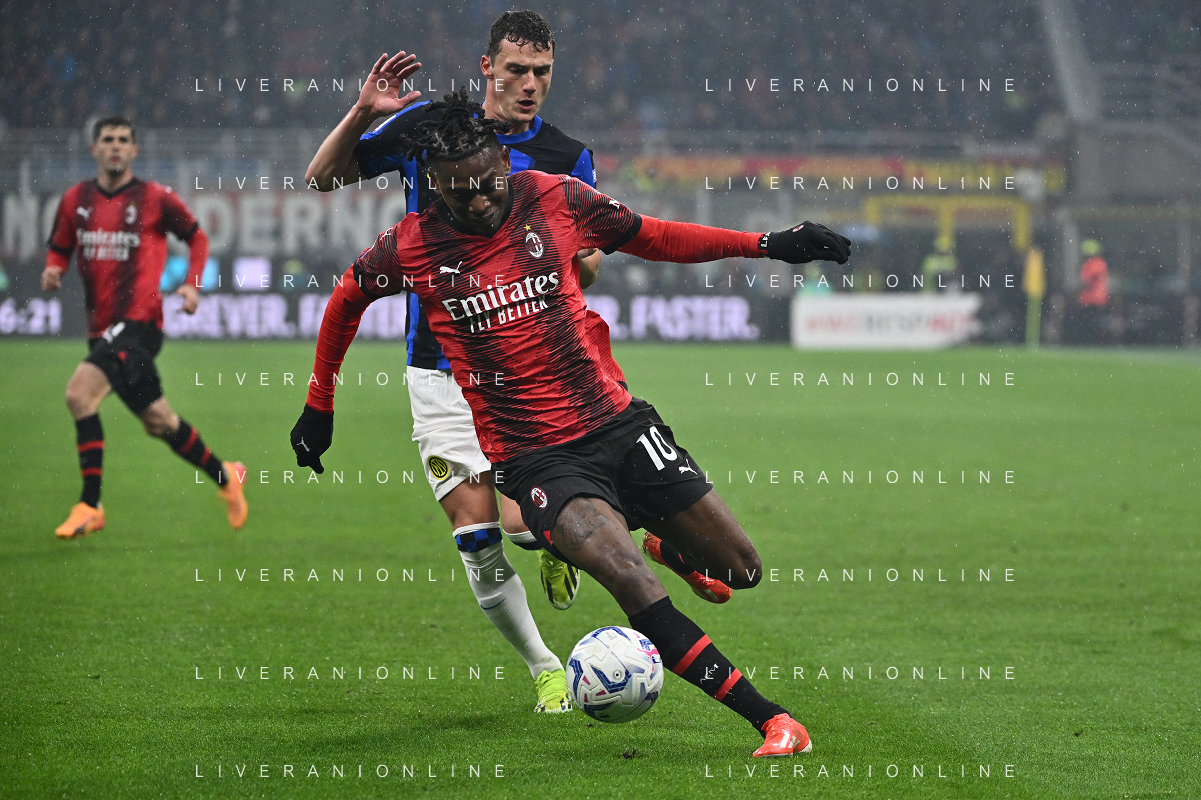 Milan vs Inter nella foto Rafael Leao (Milan) e Benjamin Pavard (Inter) Milano 22-04-2024 Stadio Giuseppe Meazza - San Siro Campionato Serie A TIM - 33a giornata foto Roberto Garavaglia/Agenzia Aldo Liverani sas / AGENZIA ALDO LIVERANI SAS