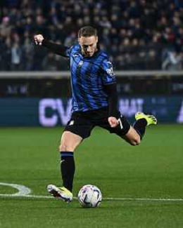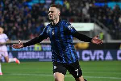 TVRG Atalanta vs Fiorentina nella foto Mario Pasalic (Atalanta) segna il gol del 4 a 1 Bergamo 24-04-2024 Gewiss Stadium Coppa Italia Frecciarossa - semifinale gara di ritorno foto Roberto Garavaglia/Agenzia Aldo Liverani sas/ AGENZIA ALDO LIVERANI SAS