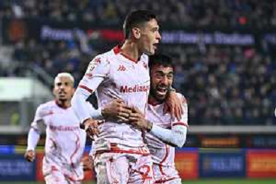 TVRG Atalanta vs Fiorentina nella foto esultanza Fiorentina dopo il gol dell'1 a 1 Bergamo 24-04-2024 Gewiss Stadium Coppa Italia Frecciarossa - semifinale gara di ritorno foto Roberto Garavaglia/Agenzia Aldo Liverani sas/ AGENZIA ALDO LIVERANI SAS