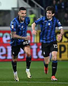 TVRG Atalanta vs Fiorentina nella foto Matteo Ruggeri (Atalanta) esulta dopo il gol del 3 a 1 di Ademola Lookman (Atalanta) Bergamo 24-04-2024 Gewiss Stadium Coppa Italia Frecciarossa - semifinale gara di ritorno foto Roberto Garavaglia/Agenzia Aldo Liverani sas/ AGENZIA ALDO LIVERANI SAS