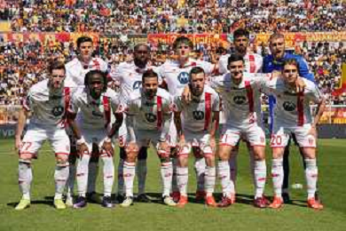 TVEM AC Monza team line up during the Italian soccer Serie A match US Lecce vs Monza on April 27, 2024 at Via del Mare Stadium in Lecce, Italy. Photo Emmanuele Mastrodonato/agenzia Liverani/ AGENZIA ALDO LIVERANI SAS