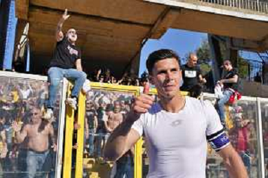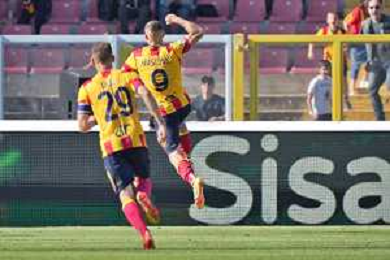 TVEM Nikola Krstovic of US Lecce celebrates after scoring a goal during the Italian soccer Serie A match US Lecce vs Monza on April 27, 2024 at Via del Mare Stadium in Lecce, Italy. Photo Emmanuele Mastrodonato/agenzia Liverani/ AGENZIA ALDO LIVERANI SAS