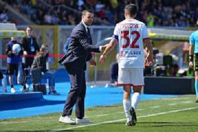 TVEM coach Raffaele Palladino of AC Monza and Matteo Pessina of AC Monza during the Italian soccer Serie A match US Lecce vs Monza on April 27, 2024 at Via del Mare Stadium in Lecce, Italy. Photo Emmanuele Mastrodonato/agenzia Liverani/ AGENZIA ALDO LIVERANI SAS