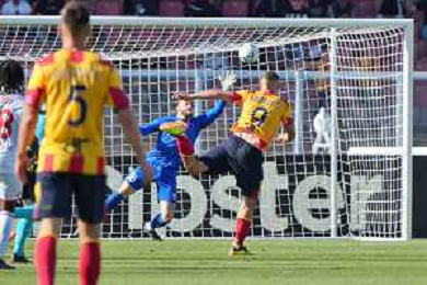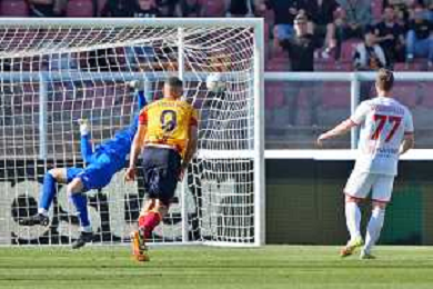 TVEM Nikola Krstovic of US Lecce scores a goal of 1-0 during the Italian soccer Serie A match US Lecce vs Monza on April 27, 2024 at Via del Mare Stadium in Lecce, Italy. Photo Emmanuele Mastrodonato/agenzia Liverani/ AGENZIA ALDO LIVERANI SAS