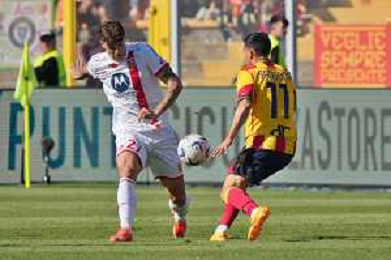 TVEM Danilo D'Ambrosio of AC Monza in action against Santiago Pierotti of US Lecce during the Italian soccer Serie A match US Lecce vs Monza on April 27, 2024 at Via del Mare Stadium in Lecce, Italy. Photo Emmanuele Mastrodonato/agenzia Liverani