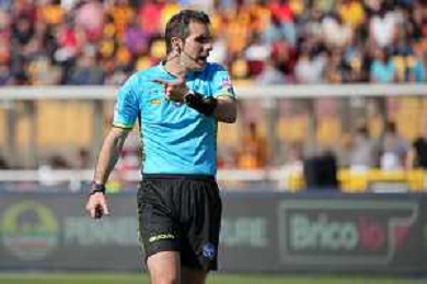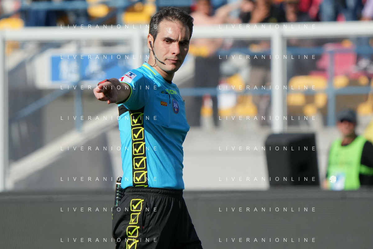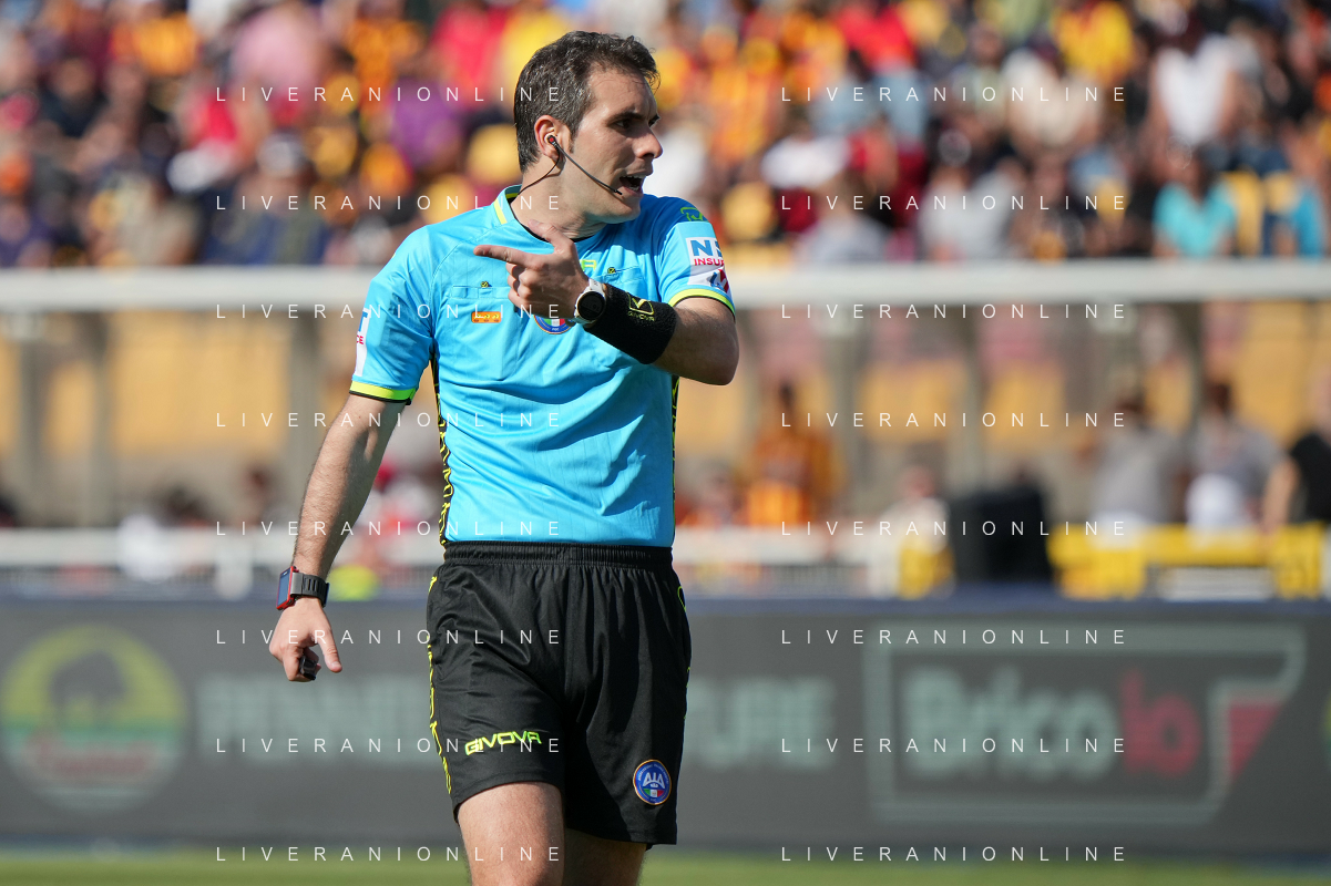 TVEM the referee Alberto Santoro of Messina during the Italian soccer Serie A match US Lecce vs Monza on April 27, 2024 at Via del Mare Stadium in Lecce, Italy. Photo Emmanuele Mastrodonato/agenzia Liverani