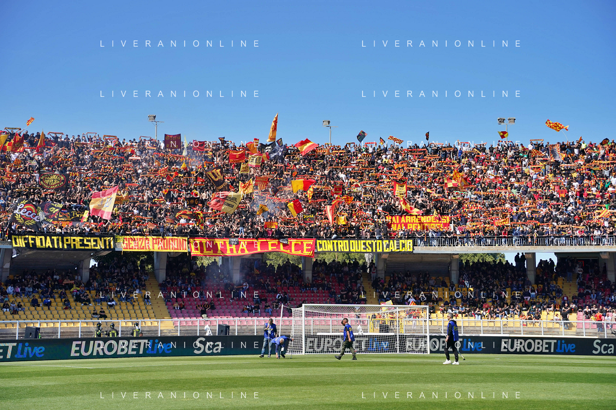 TVEM Supporters of US Lecce during the Italian soccer Serie A match US Lecce vs Monza on April 27, 2024 at Via del Mare Stadium in Lecce, Italy. Photo Emmanuele Mastrodonato/agenzia Liverani/ AGENZIA ALDO LIVERANI SAS