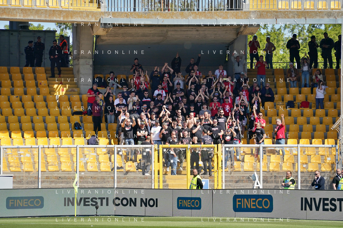 TVEM Supporters of AC Monza during the Italian soccer Serie A match US Lecce vs Monza on April 27, 2024 at Via del Mare Stadium in Lecce, Italy. Photo Emmanuele Mastrodonato/agenzia Liverani/ AGENZIA ALDO LIVERANI SAS
