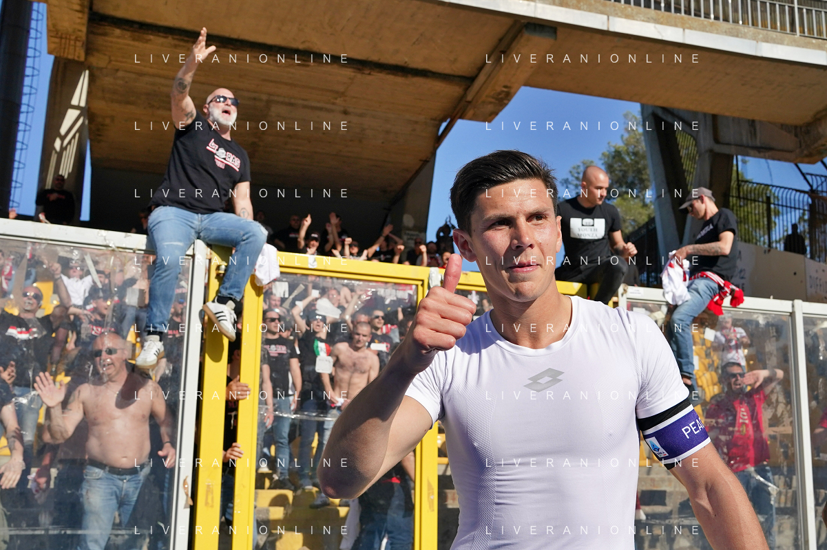 TVEM players of AC Monza applauds fans during the Italian soccer Serie A match US Lecce vs Monza on April 27, 2024 at Via del Mare Stadium in Lecce, Italy. Photo Emmanuele Mastrodonato/agenzia Liverani/ AGENZIA ALDO LIVERANI SAS