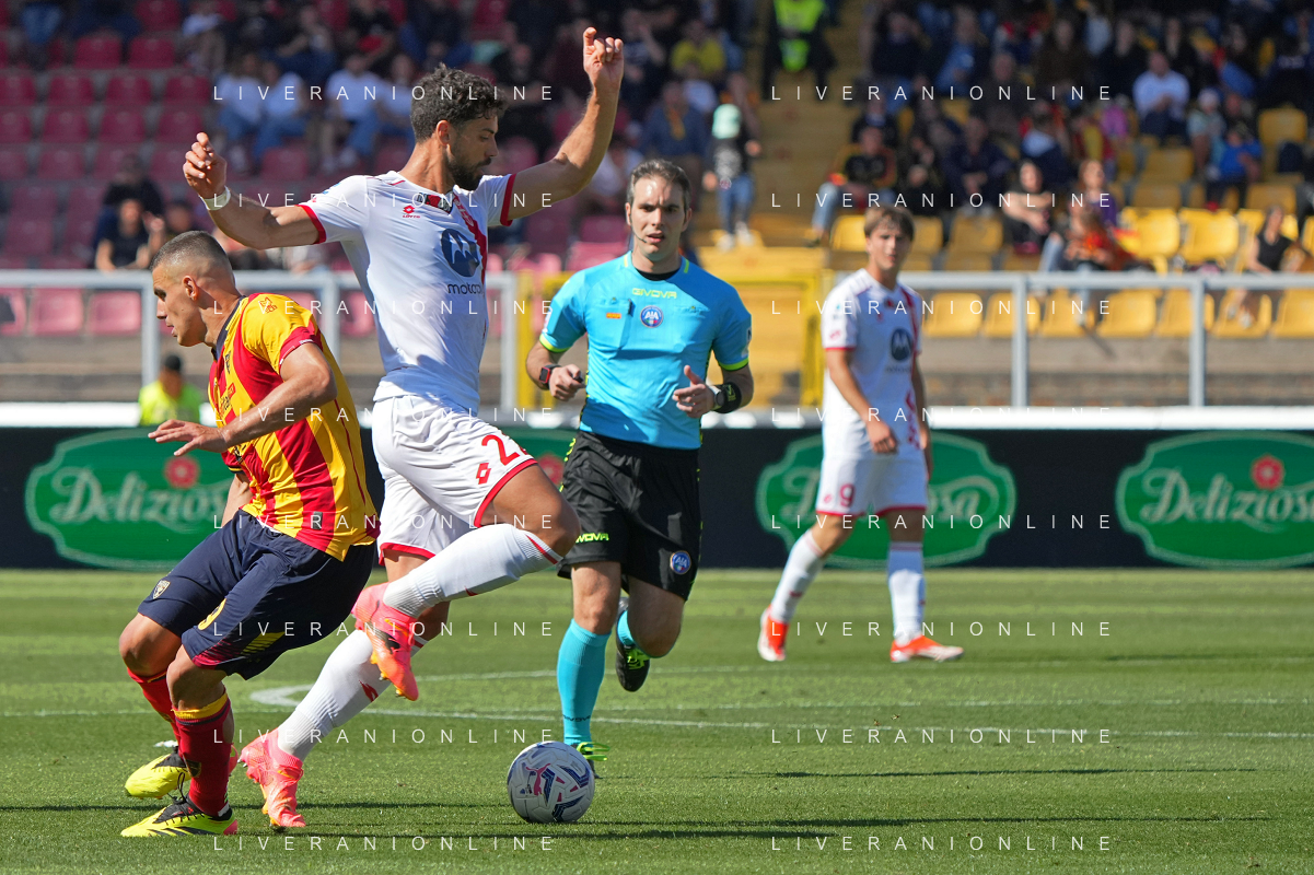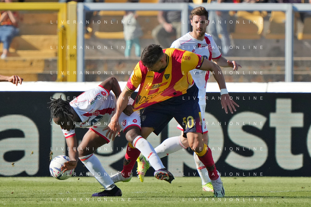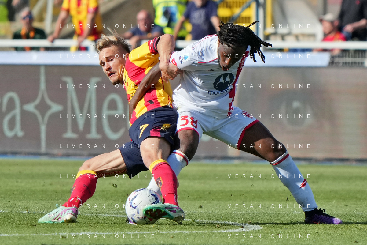 TVEM Alexis Blin of US Lecce and Geōrgios Kyriakopoulos of AC Monza during the Italian soccer Serie A match US Lecce vs Monza on April 27, 2024 at Via del Mare Stadium in Lecce, Italy. Photo Emmanuele Mastrodonato/agenzia Liverani