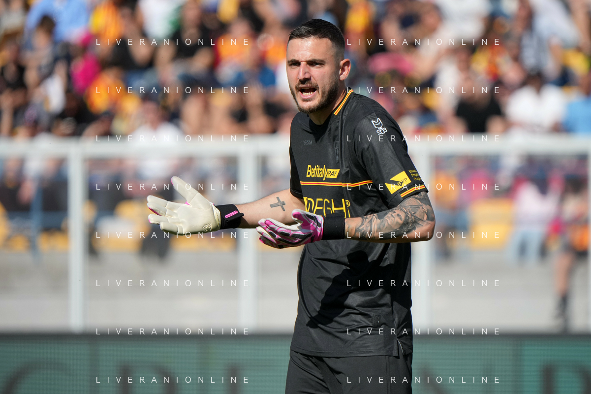 TVEM Wladimiro Falcone of US Lecce during the Italian soccer Serie A match US Lecce vs Monza on April 27, 2024 at Via del Mare Stadium in Lecce, Italy. Photo Emmanuele Mastrodonato/agenzia Liverani