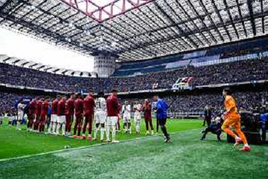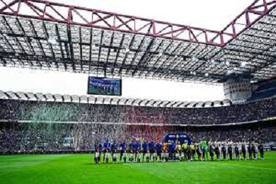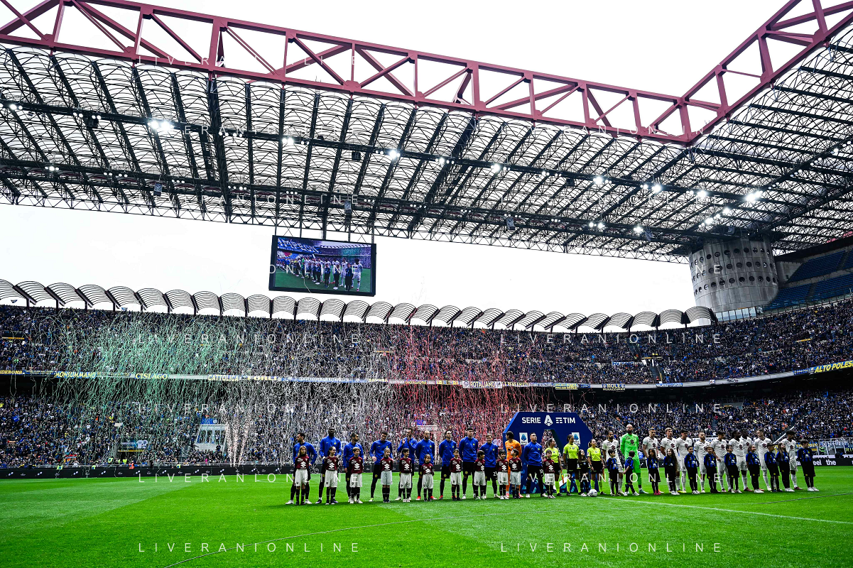 Inter vs Torino nella foto vista generale dello Stadio San Siro con le squadre schierate a centrocampo, Milano 28-04-2024 Stadio Giuseppe Meazza - San Siro Campionato Serie A TIM - 34a giornata foto Tiziano Ballabio/Agenzia Aldo Liverani sas / AGENZIA ALDO LIVERANI SAS / AGENZIA ALDO LIVERANI SAS