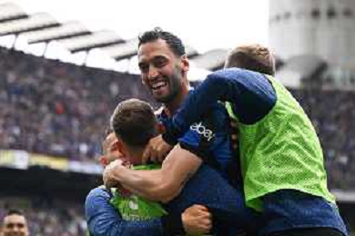 Inter vs Torino nella foto al squadra Inter esulta con Hakan Çalhanoglu (Inter) esulta dopo il gol del 2 a 0 Milano 28-04-2024 Stadio Giuseppe Meazza - San Siro Campionato Serie A TIM - 34a giornata foto Tiziano Ballabio/Agenzia Aldo Liverani sas / AGENZIA ALDO LIVERANI SAS / AGENZIA ALDO LIVERANI SAS