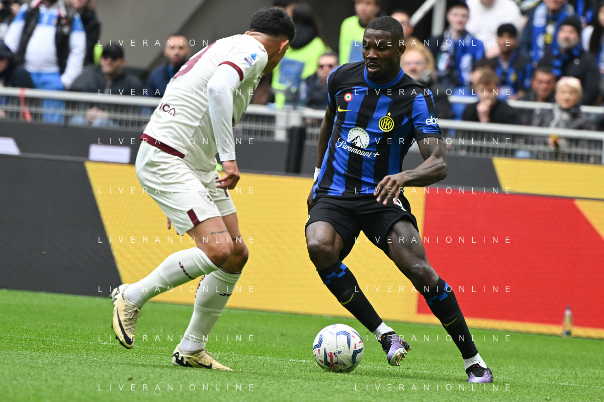 Inter vs Torino nella foto Marcus Thuram (Inter) Milano 28-04-2024 Stadio Giuseppe Meazza - San Siro Campionato Serie A TIM - 34a giornata foto Tiziano Ballabio/Agenzia Aldo Liverani sas / AGENZIA ALDO LIVERANI SAS / AGENZIA ALDO LIVERANI SAS