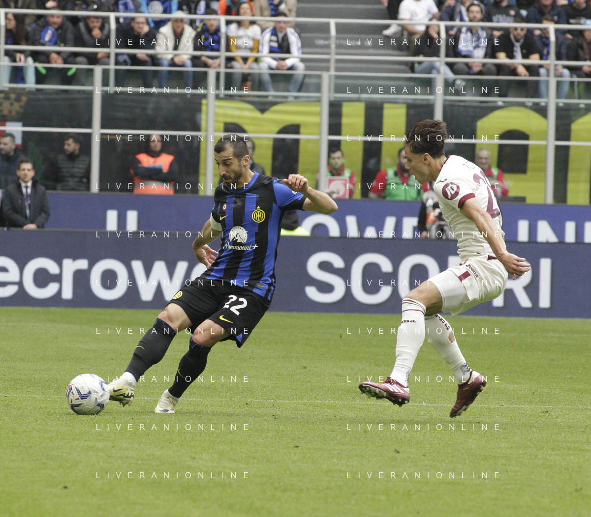 Inter vs Torino nella foto Henrikh Mkhitaryan (Inter) al tiro conclude a lato Milano 28-04-2024 Stadio Giuseppe Meazza - San Siro Campionato Serie A TIM - 34a giornata foto Tiziano Ballabio/Agenzia Aldo Liverani sas / AGENZIA ALDO LIVERANI SAS / AGENZIA ALDO LIVERANI SAS