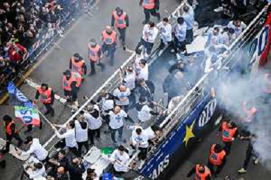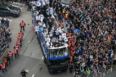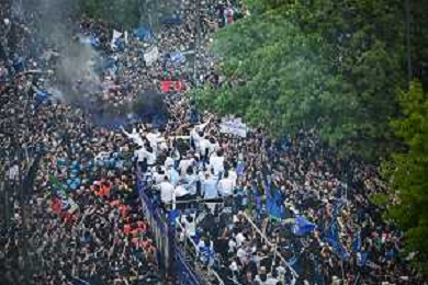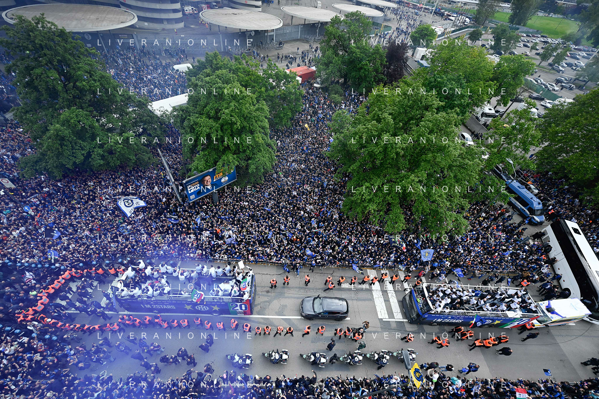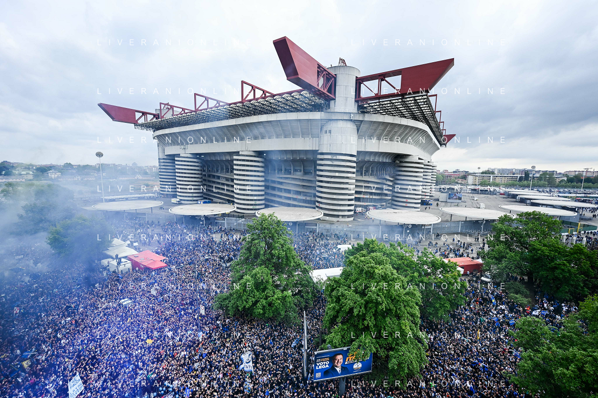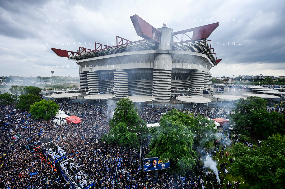 Inter vs Torino nella foto tifosi Inter salutano l’arrivo del bus prima dopo la partita all'uscita da San Siro, Milano 28-04-2024 Stadio Giuseppe Meazza Campionato Serie A TIM - 34a giornata foto Tiziano Ballabio/Agenzia Aldo Liverani sas / AGENZIA ALDO LIVERANI SAS -FESTEGGIAMENTI INTER PER LA VITTORIA DEL 20mo SCUDETTO, PARATA DEI GIOCATORI IN CORTEO SUL PULLMAN SCOPERTO, PER LE VIE DI MILANO 28.04.2024