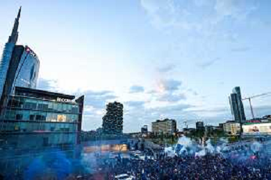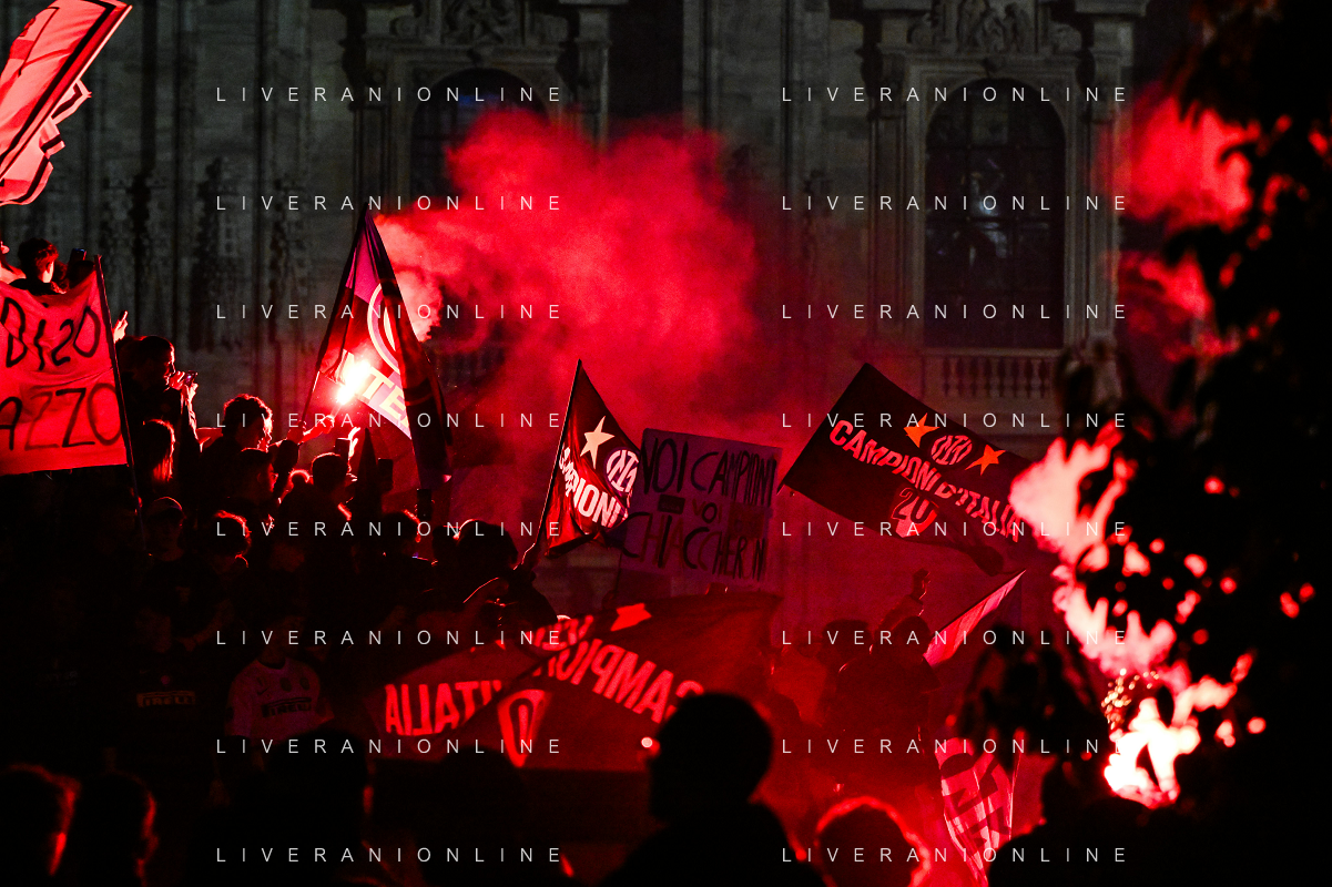 Inter vs Torino nella foto tifosi Inter salutano l’arrivo del bus prima della partita Milano 28-04-2024 Piazza Duomo Campionato Serie A TIM - 34a giornata foto Tiziano Ballabio/Agenzia Aldo Liverani sas / AGENZIA ALDO LIVERANI SAS -FESTEGGIAMENTI DEI TIFOSI INTER PER LA VITTORIA DEL 20mo SCUDETTO, MILANO 28.04.2024