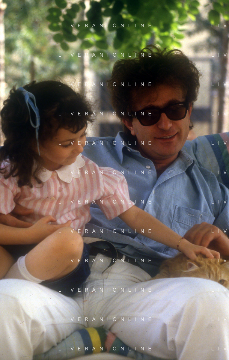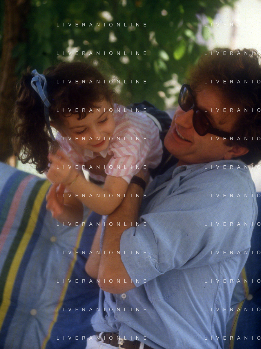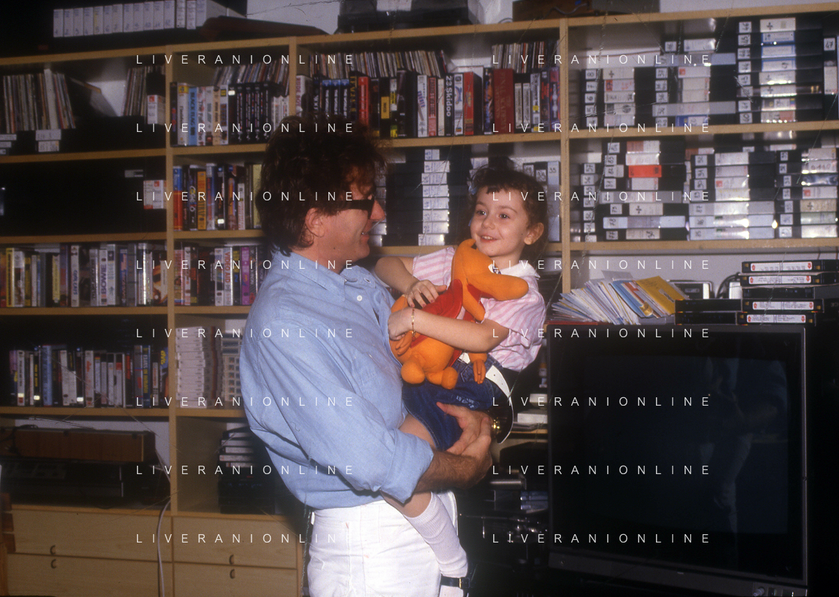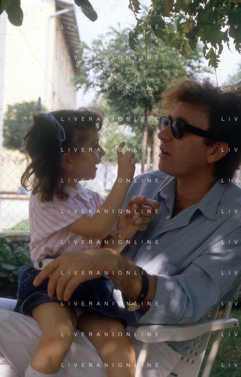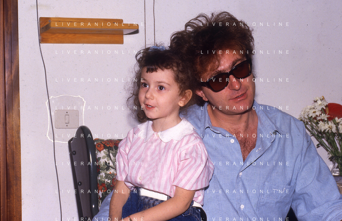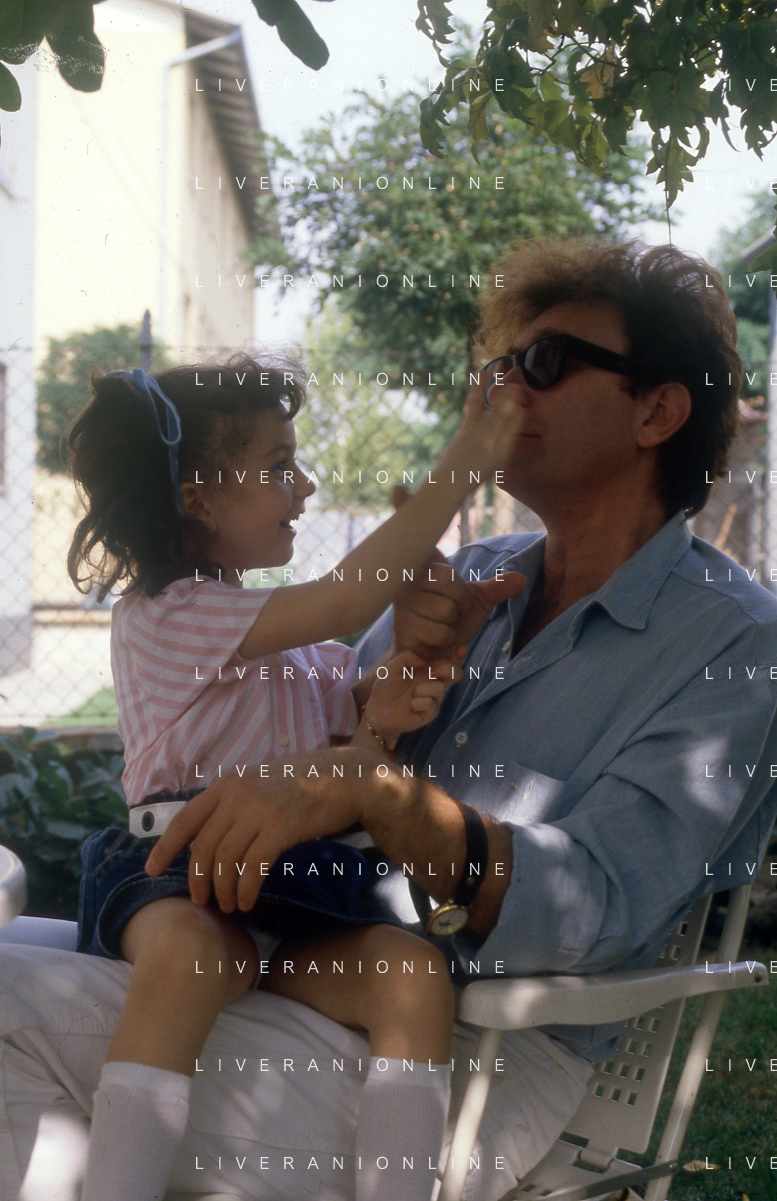DIAP-RETROSPETTIVA RED RONNIE PSEUDONIMO GABRIELE ANSALONI-CRITICO MUSICALE GIORNATISTA PRESENTATORE TELEVISIVO E CONDUTTORE RADIOFONICO NELLA FOTO RED RONNIE CON LA FIGLIA JESSICA NELL'ANNO 1986 AG ALDO LIVERANI SAS