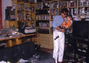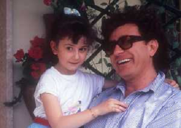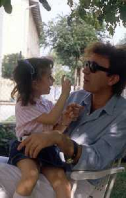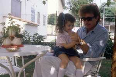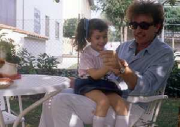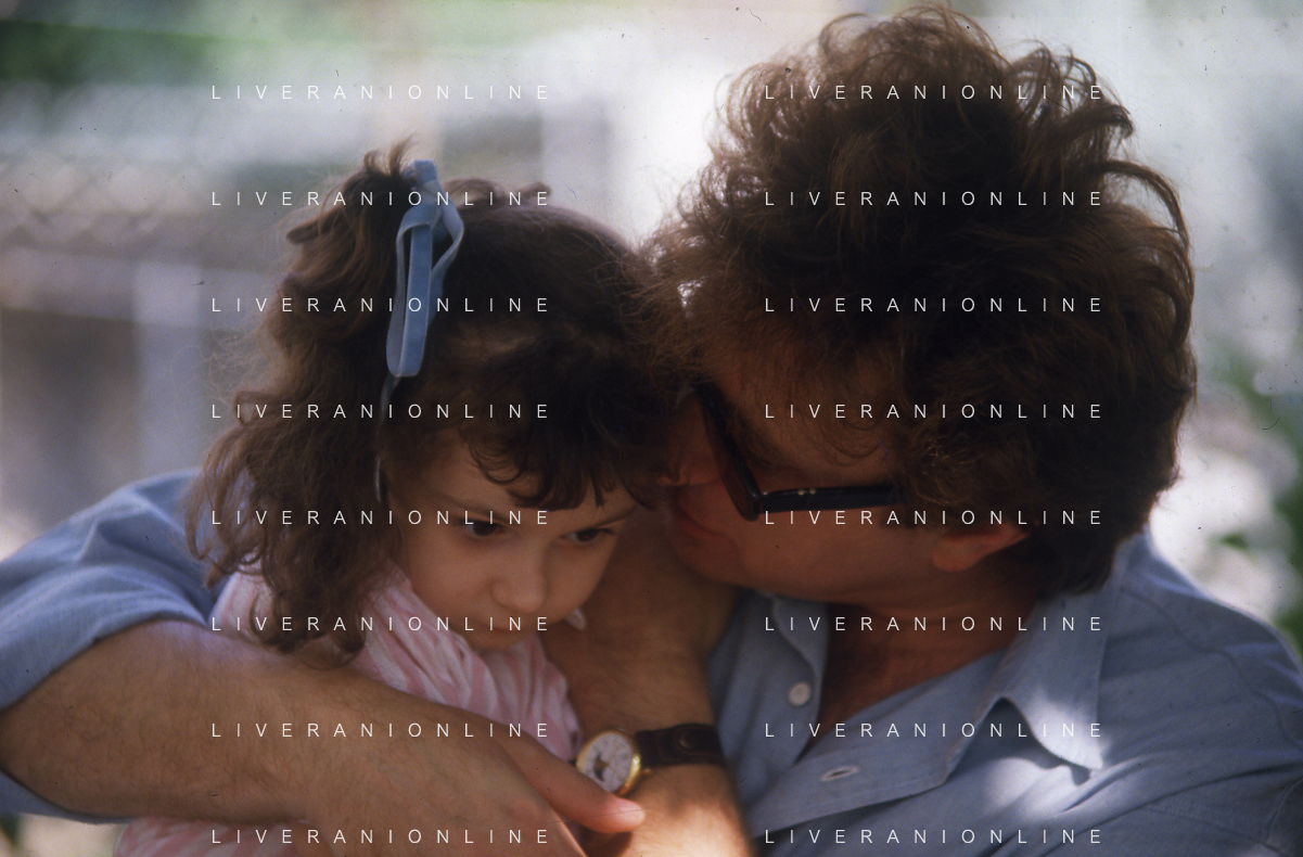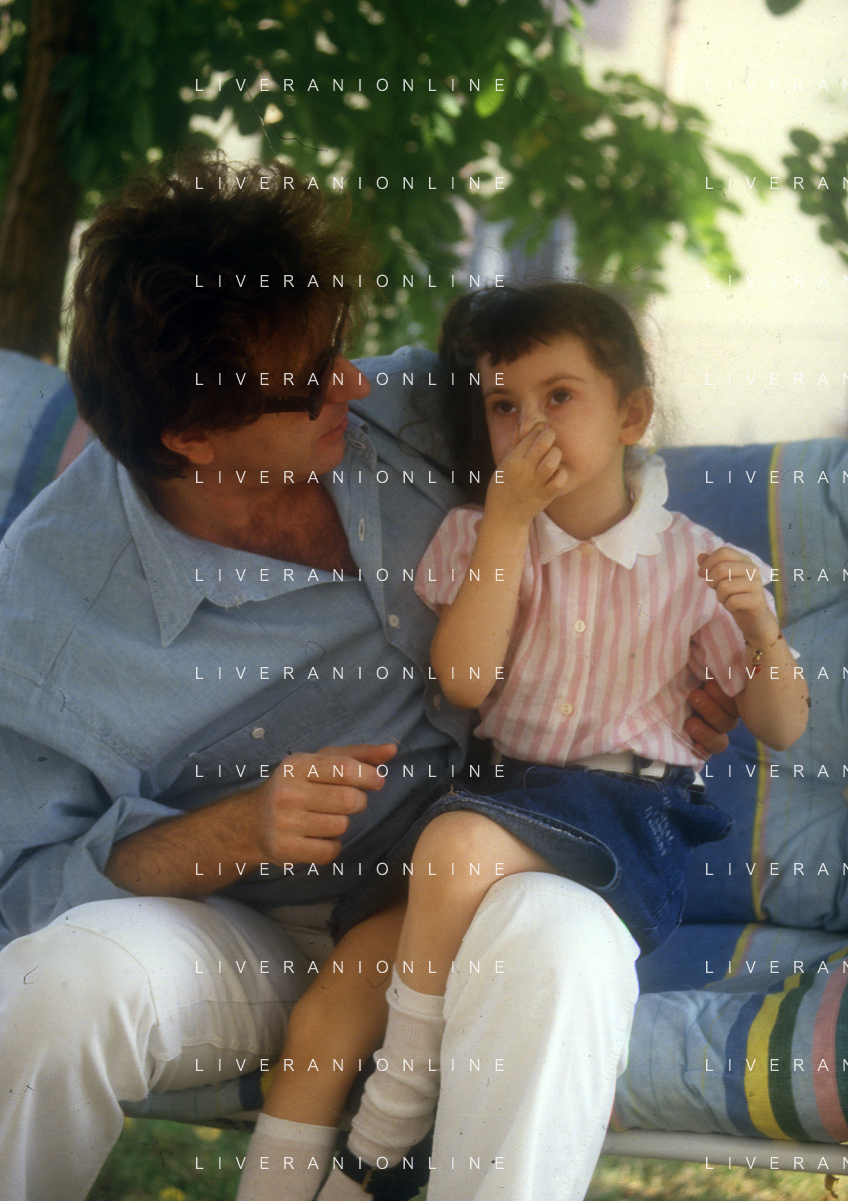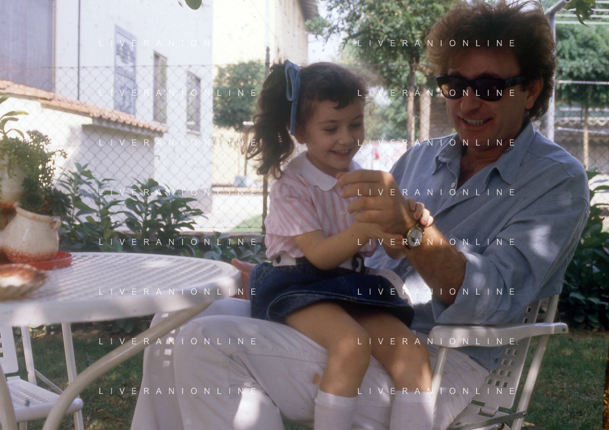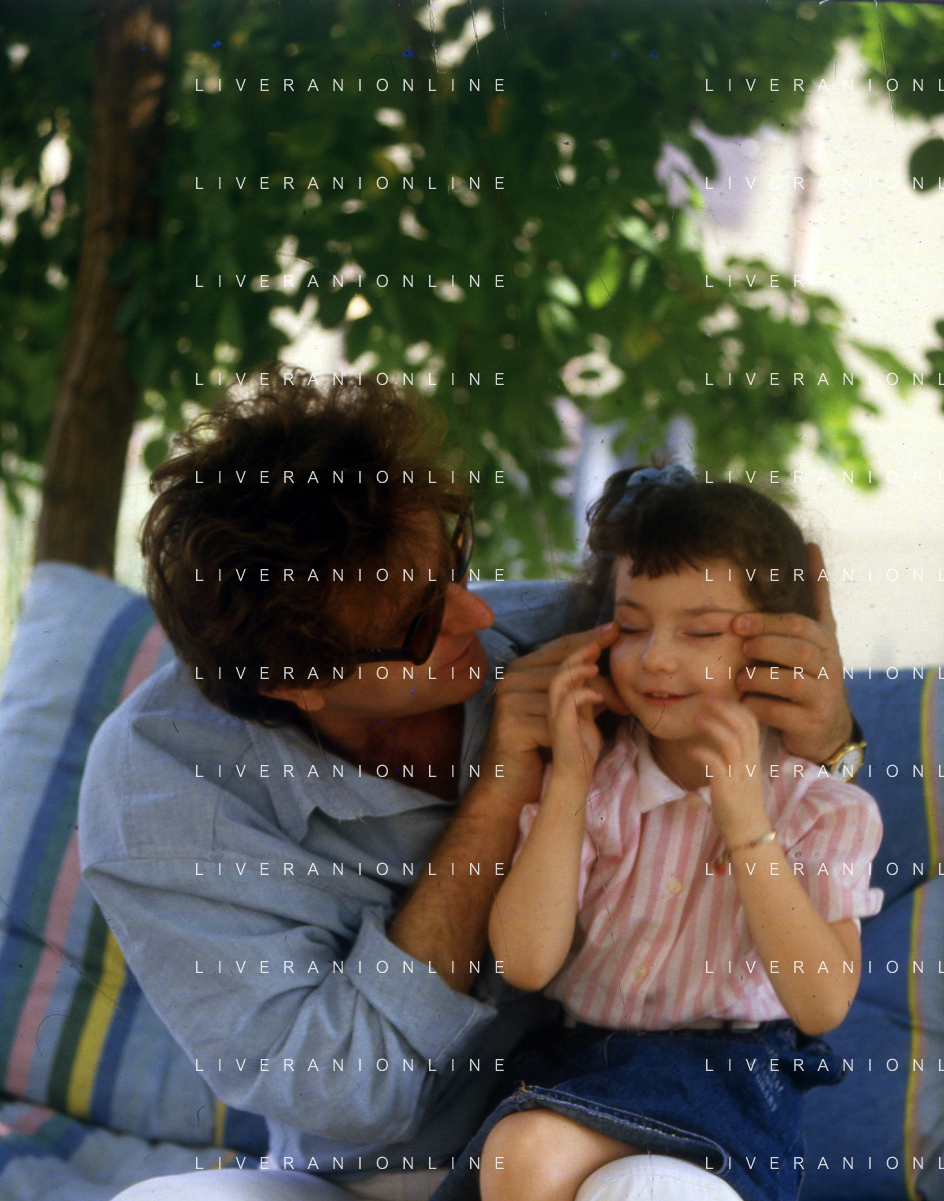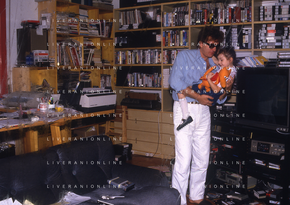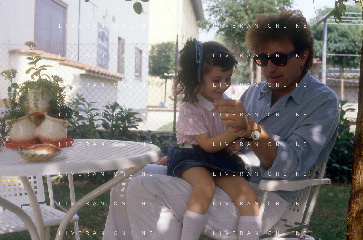 DIAP-RETROSPETTIVA RED RONNIE PSEUDONIMO GABRIELE ANSALONI-CRITICO MUSICALE GIORNATISTA PRESENTATORE TELEVISIVO E CONDUTTORE RADIOFONICO NELLA FOTO RED RONNIE CON LA FIGLIA JESSICA NELL'ANNO 1986 AG ALDO LIVERANI SAS