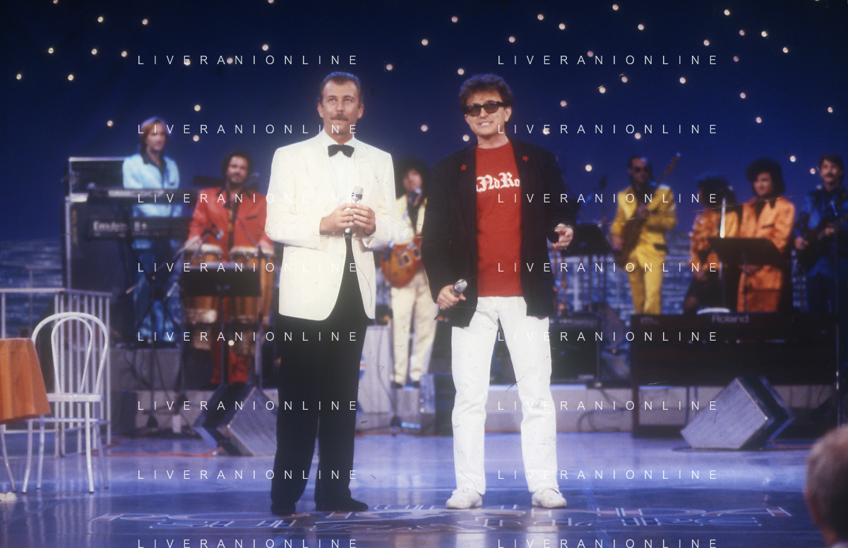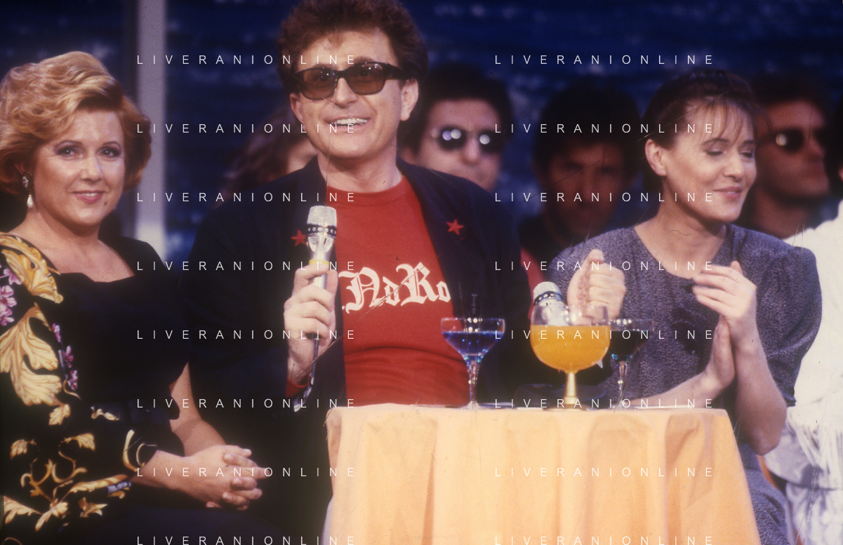 DIAP-RETROSPETTIVA RED RONNIE PSEUDONIMO GABRIELE ANSALONI-CRITICO MUSICALE GIORNATISTA PRESENTATORE TELEVISIVO E CONDUTTORE RADIOFONICO NELLA FOTO RED RONNIE CON ORIETTA BERTI NELL'ANNO 1989 A MILANO “ROTONDA SUL MARE“ AG ALDO LIVERANI SAS