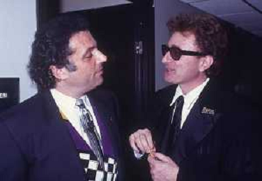 DIAP-RETROSPETTIVA RED RONNIE PSEUDONIMO GABRIELE ANSALONI-CRITICO MUSICALE GIORNATISTA PRESENTATORE TELEVISIVO E CONDUTTORE RADIOFONICO NELLA FOTO RED RONNIE NELL'ANNO 1990 A MILANO CON ANDREA RONCATO AG ALDO LIVERANI SAS