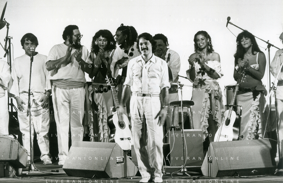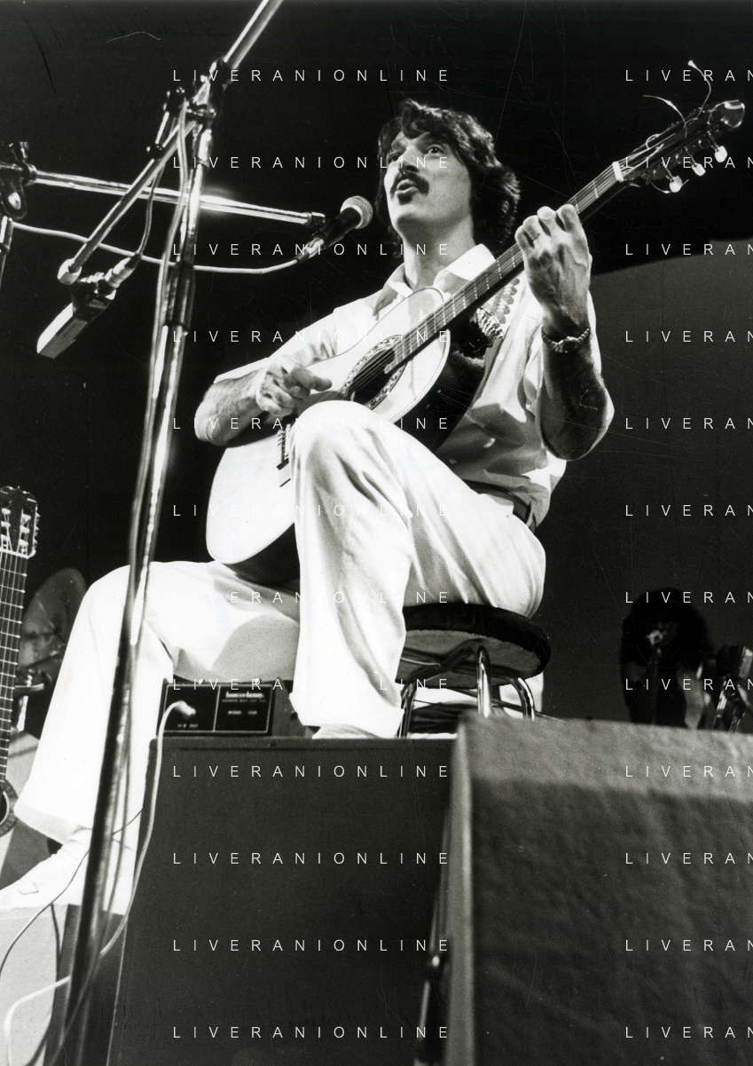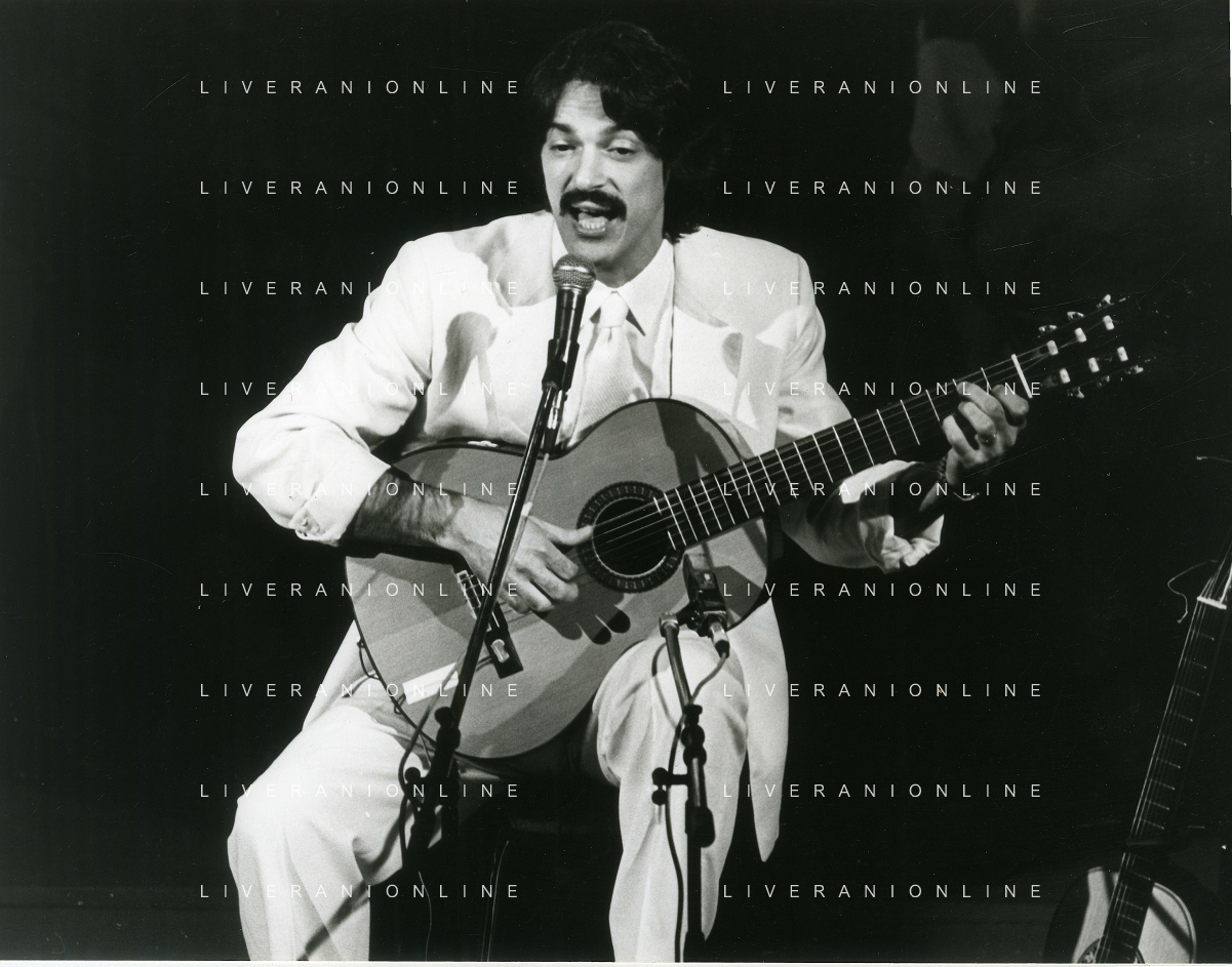 NEG-RETROSPETTIVA TOQUINHO PSEUDONIMO ANTONIO PECCI FILHO CANTANTE-CHITARRISTA E CANTAUTORE BRASILIANO NELLA FOTO TOQUINHO AL TEATRO CRISTALLO NELL'ANNO 1984 AG ALDO LIVERANI SAS