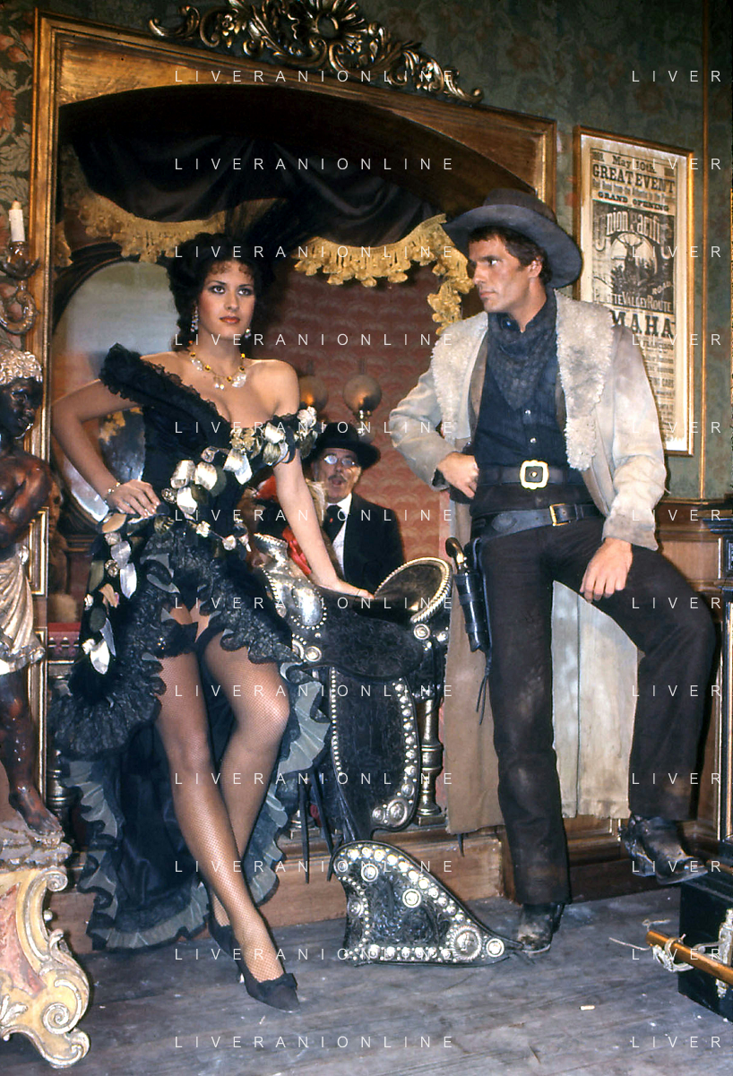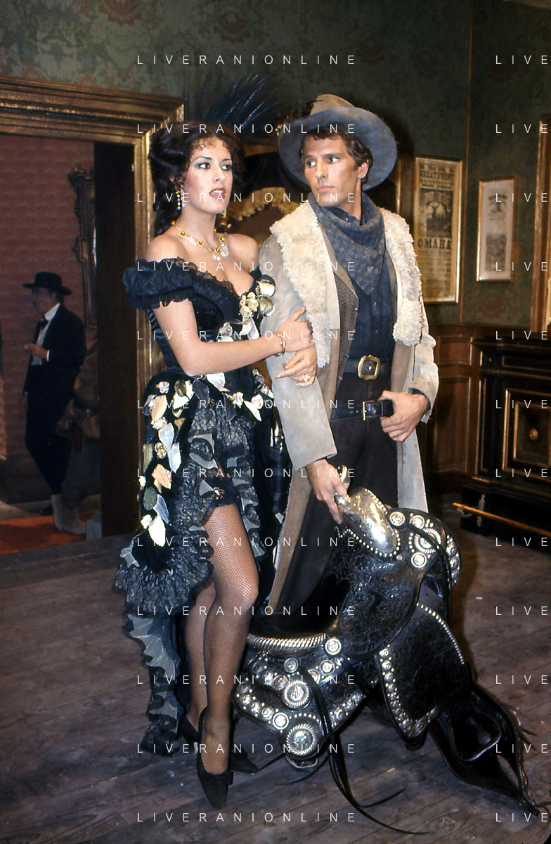 DIAP-RETROSPETTIVA GIULIANO GEMMA ATTORE NELLA FOTO GIULIANO GEMMA CON LICINIA LENTINI SUL SET DEL FILM“ SELLA D'ARGENTO“NELL'ANNO 1978 AG ALDO LIVERANI SAS