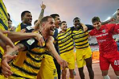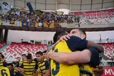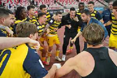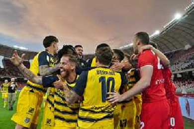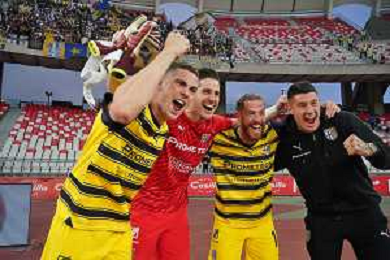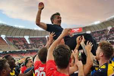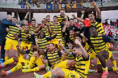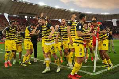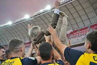 TVEM The Parma Calcio players are celebrating their mathematical promotion to Serie A at the end of the Serie B match on the SSC Bari field in Bari, Italy, on May 1, 2024. Photo by Emmanuele Mastrodonato/agenzia Aldo Liverani sas / AGENZIA ALDO LIVERANI SAS