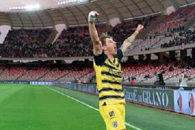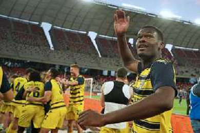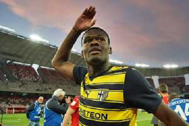 Ange-Yoan Bonny of Parma Calcio celebrates the victory during the Italian Serie B match SSC Bari vs Parma on May 01, 2024 at the San Nicola stadium in Bari, Italy. Photo by Emmanuele Mastrodonato/agenzia Aldo Liverani sas/ AGENZIA ALDO LIVERANI SAS