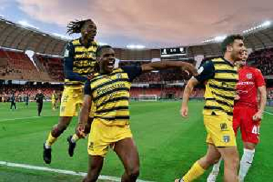 TVEM Players of Parma Calcio celebrates after scoring a goal during the Italian Serie B match SSC Bari vs Parma on May 01, 2024 at the San Nicola stadium in Bari, Italy. Photo by Emmanuele Mastrodonato/agenzia Aldo Liverani sas / AGENZIA ALDO LIVERANI SAS