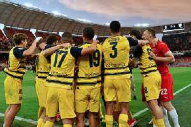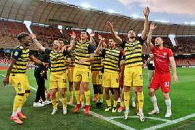 Players of Parma Calcio celebrates the victory during the Italian Serie B match SSC Bari vs Parma on May 01, 2024 at the San Nicola stadium in Bari, Italy. Photo by Emmanuele Mastrodonato/agenzia Aldo Liverani sas/ AGENZIA ALDO LIVERANI SAS