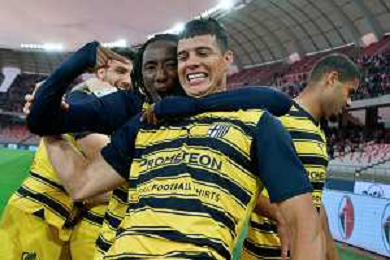 TVEM Ange-Yoan Bonny of Parma Calcio celebrates after scoring a goal during the Italian Serie B match SSC Bari vs Parma on May 01, 2024 at the San Nicola stadium in Bari, Italy. Photo by Emmanuele Mastrodonato/agenzia Aldo Liverani sas / AGENZIA ALDO LIVERANI SAS