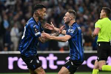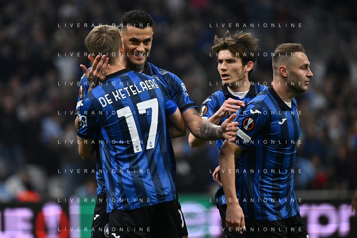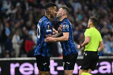 TVRG Olympique Marsiglia vs Atalanta nella foto Gianluca Scamacca (Atalanta) e Teun Koopmeiners (Atalanta) esultanoi dopo il gol dell'1 a 0 Marsiglia (FRA) 02-05-2024 Stadio Velodrome UEFA Europa League - semifinale gara di andata foto Roberto Garavaglia/Agenzia Aldo Liverani sas/ AGENZIA ALDO LIVERANI SAS