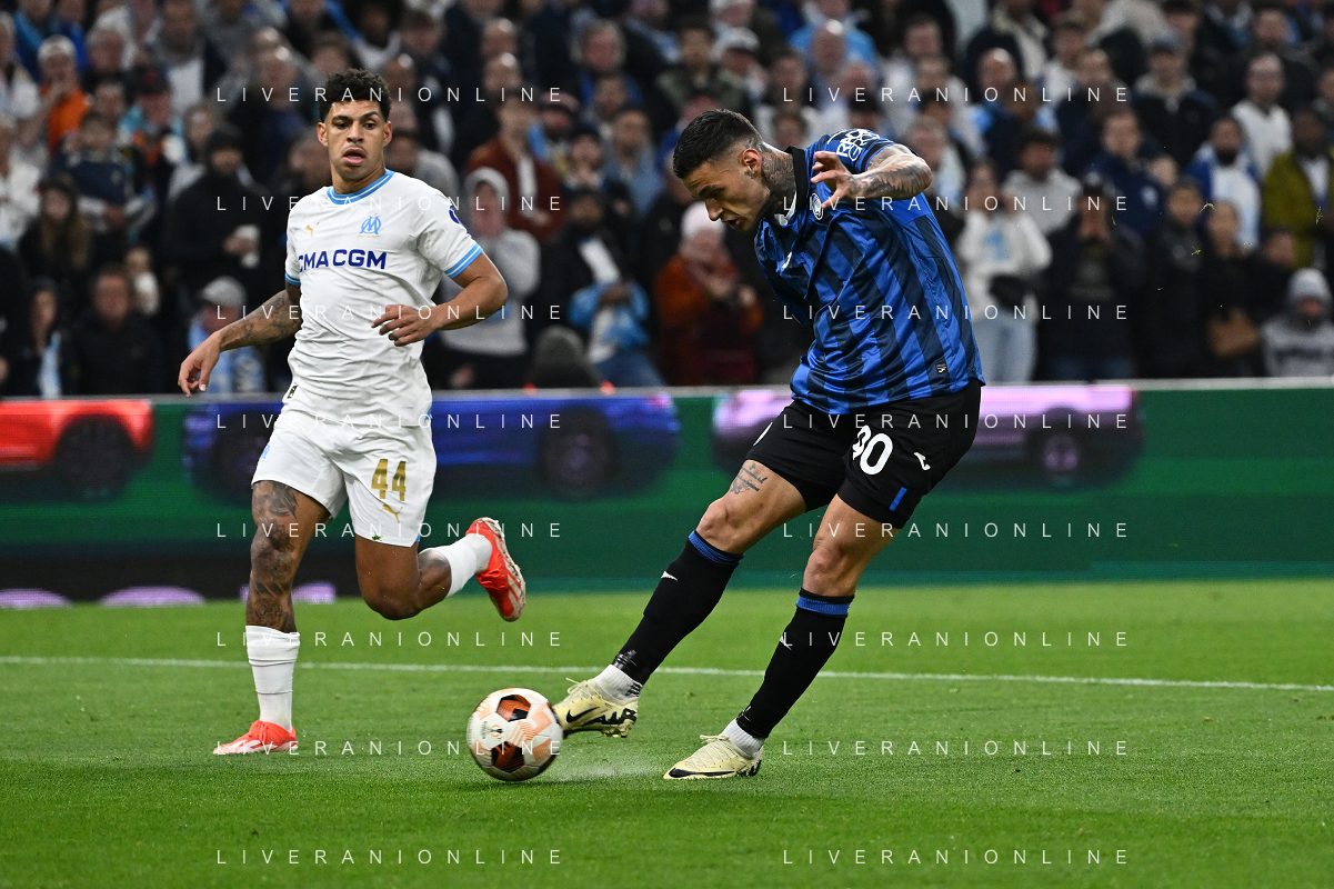 TVRG Olympique Marsiglia vs Atalanta nella foto Teun Koopmeiners (Atalanta) serve a Gianluca Scamacca (Atalanta) la palla per il gol dell'1 a 0 Marsiglia (FRA) 02-05-2024 Stadio Velodrome UEFA Europa League - semifinale gara di andata foto Roberto Garavaglia/Agenzia Aldo Liverani sas/ AGENZIA ALDO LIVERANI SAS