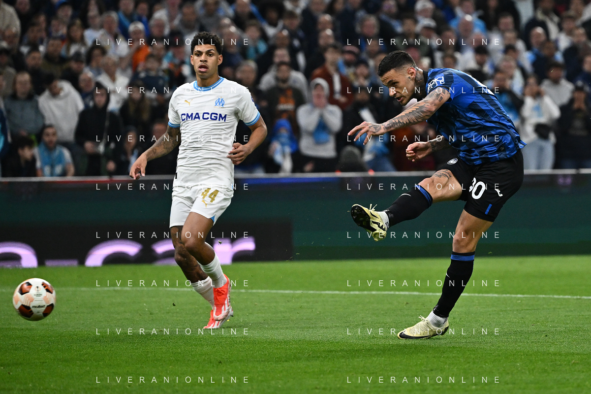 TVRG Olympique Marsiglia vs Atalanta nella foto Gianluca Scamacca (Atalanta) segna il gol dell'1 a 0 Marsiglia (FRA) 02-05-2024 Stadio Velodrome UEFA Europa League - semifinale gara di andata foto Roberto Garavaglia/Agenzia Aldo Liverani sas/ AGENZIA ALDO LIVERANI SAS