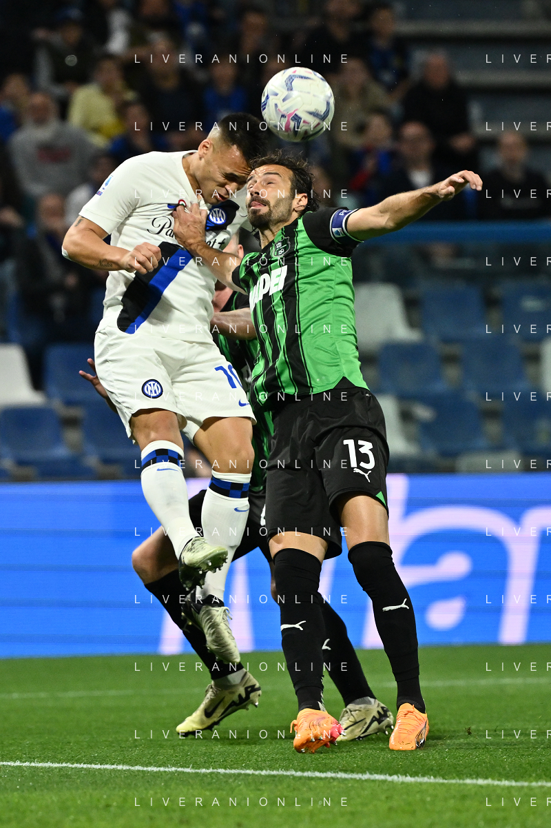 Sassuolo vs Inter nella foto Lautaro Martinez (Inter) e Gian Marco Ferrari (Sassuolo) Reggio Emilia 04-05-2024 Mapei Stadium - Stadio Città del Tricolore Campionato Serie A TIM - 35a giornata foto Roberto Garavaglia/Agenzia Aldo Liverani sas/ AGENZIA ALDO LIVERANI SAS