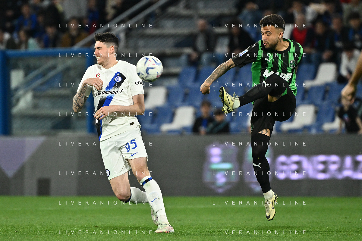 Sassuolo vs Inter nella foto Alessandro Bastoni (Inter) e Matheus Henrique (Sassuolo) Reggio Emilia 04-05-2024 Mapei Stadium - Stadio Città del Tricolore Campionato Serie A TIM - 35a giornata foto Roberto Garavaglia/Agenzia Aldo Liverani sas/ AGENZIA ALDO LIVERANI SAS
