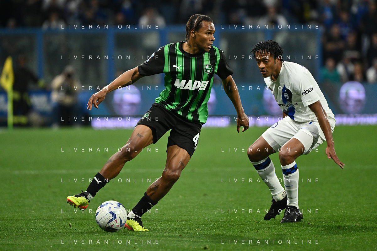 Sassuolo vs Inter nella foto Armand Lauriente' (Sassuolo) e sulla DX Juan Cuadrado (Inter) Reggio Emilia 04-05-2024 Mapei Stadium - Stadio Città del Tricolore Campionato Serie A TIM - 35a giornata foto Roberto Garavaglia/Agenzia Aldo Liverani sas/ AGENZIA ALDO LIVERANI SAS