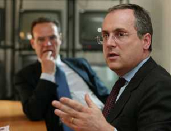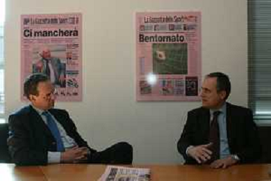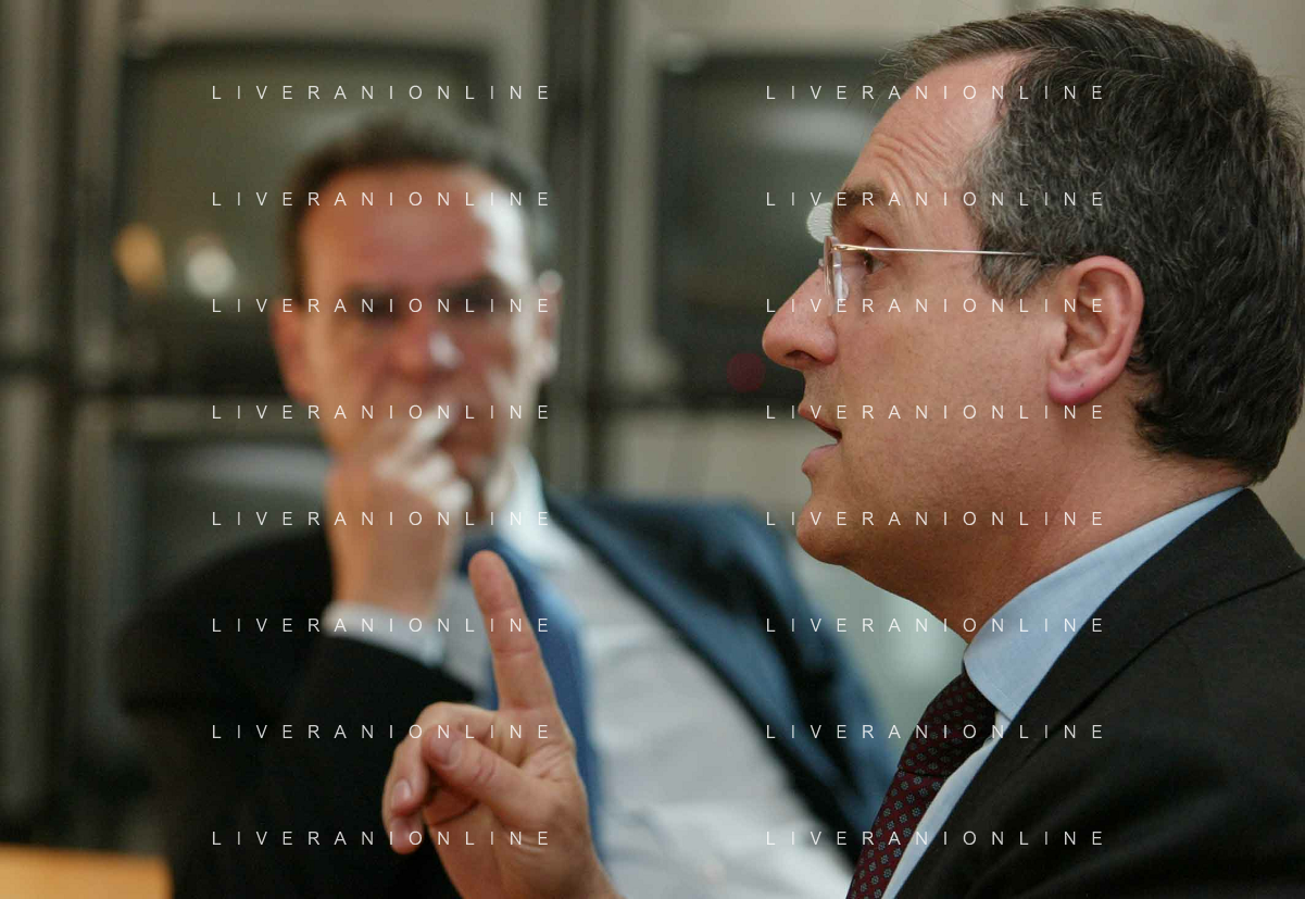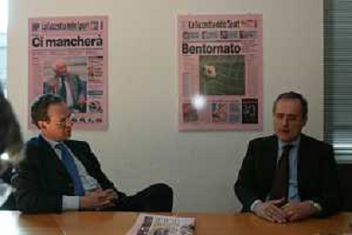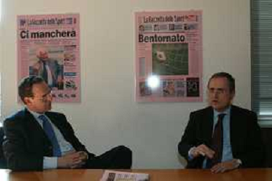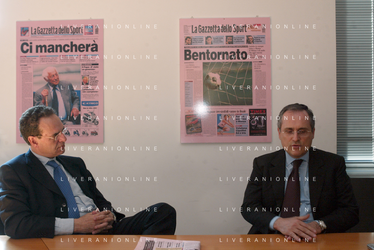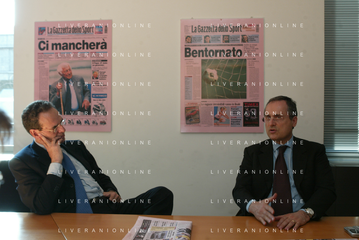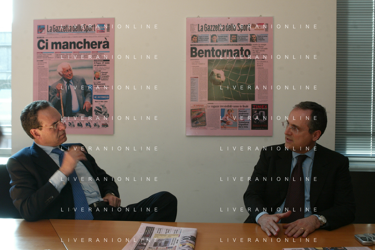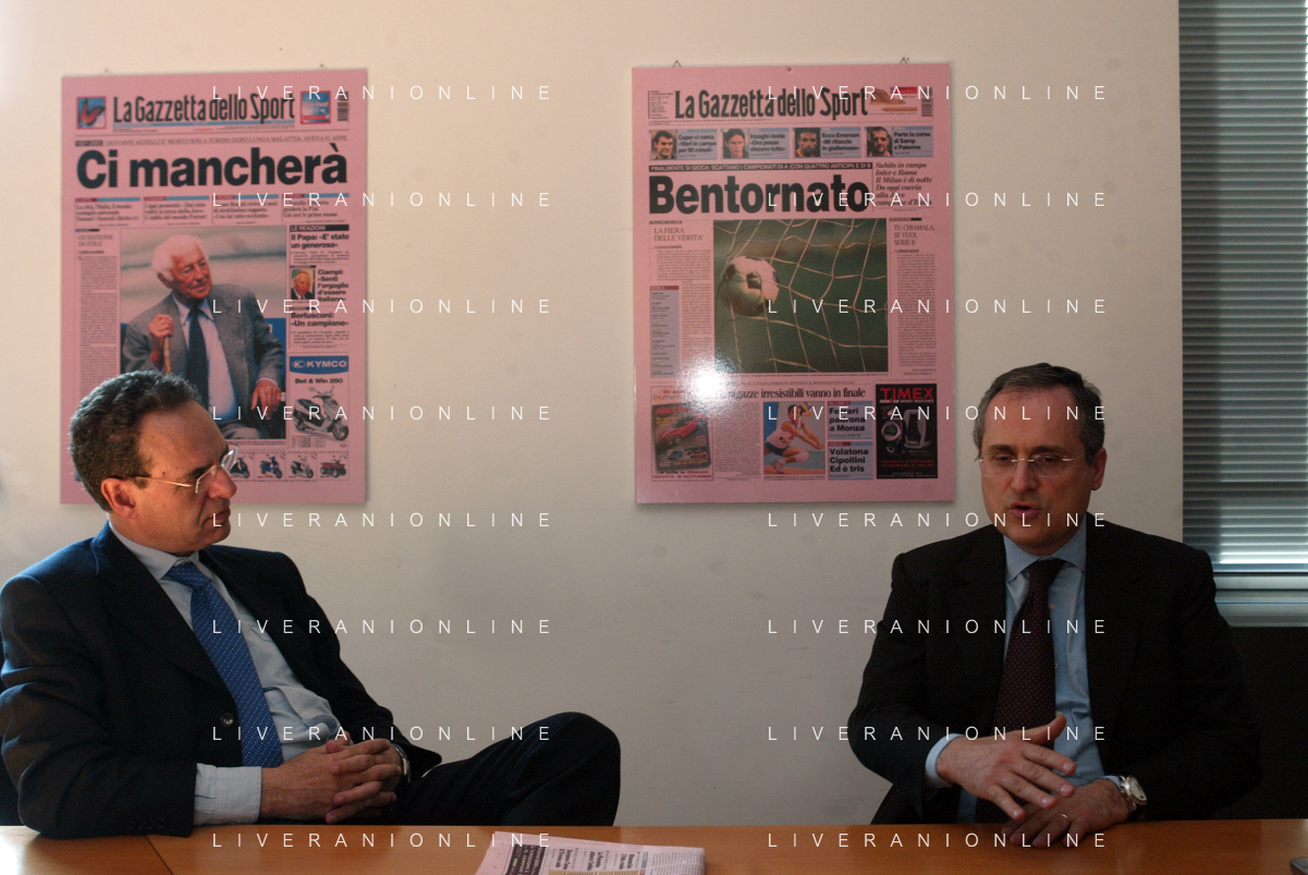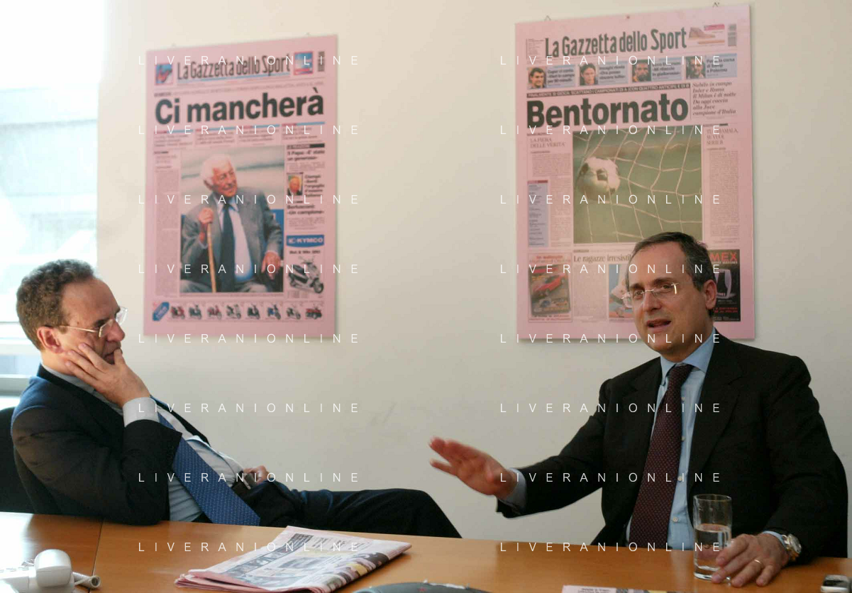 21-04-2005 MILANO REDAZIOE DELLA GAZZETTA DELLO SPORT OSPITE IL PRESIDENTE DELLA LAZIO CALCIO CLAUDIO LOTITO MELLA FOTO CLAUDIO LOTITO CON IL DIRETTORE DELLA GAZZETTA DELLO SPORT ANTONIO DI ROSA AG ALDO LIVERANI SAS