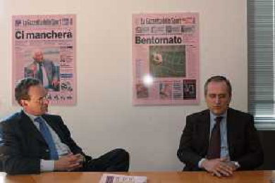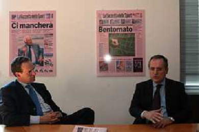 21-04-2005 MILANO REDAZIOE DELLA GAZZETTA DELLO SPORT OSPITE IL PRESIDENTE DELLA LAZIO CALCIO CLAUDIO LOTITO MELLA FOTO CLAUDIO LOTITO AG ALDO LIVERANI SAS