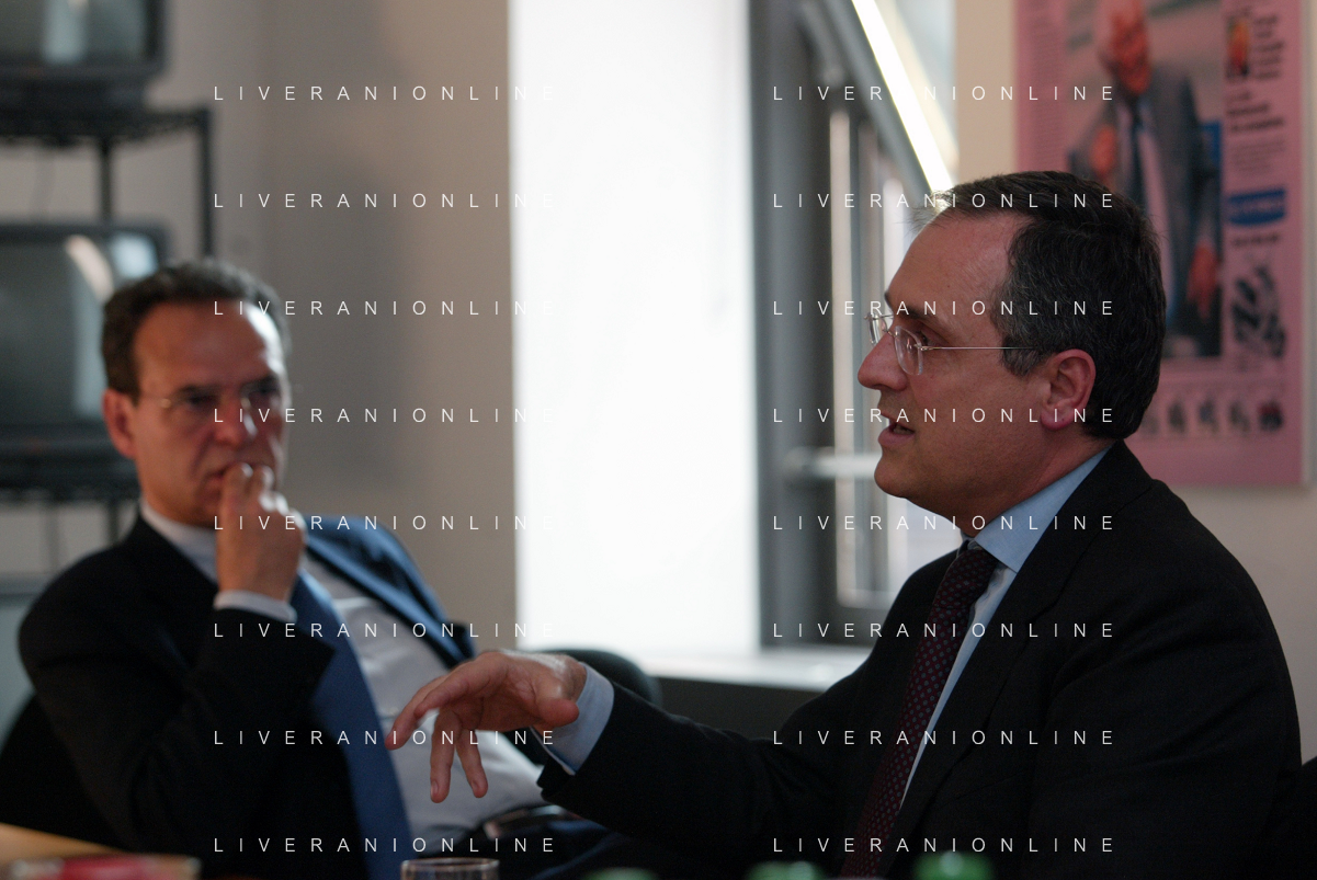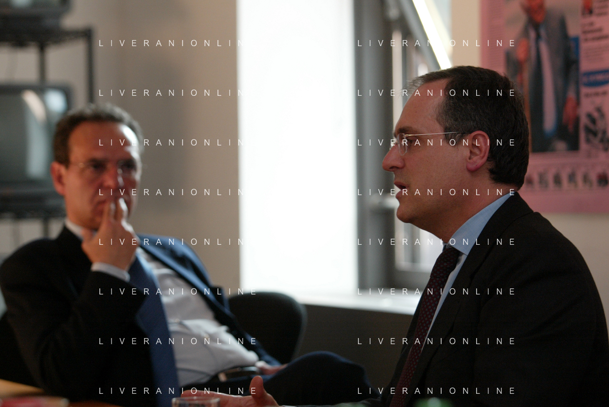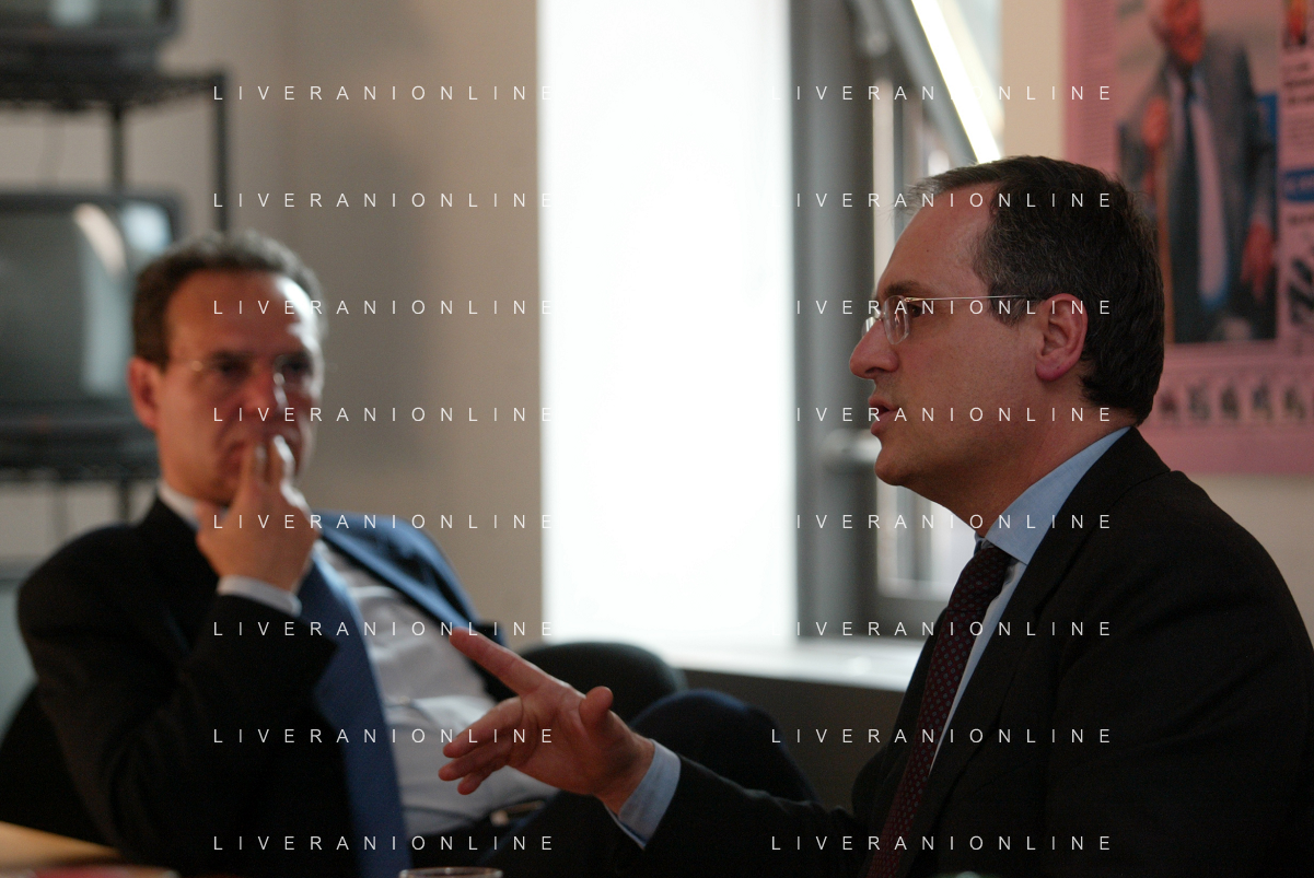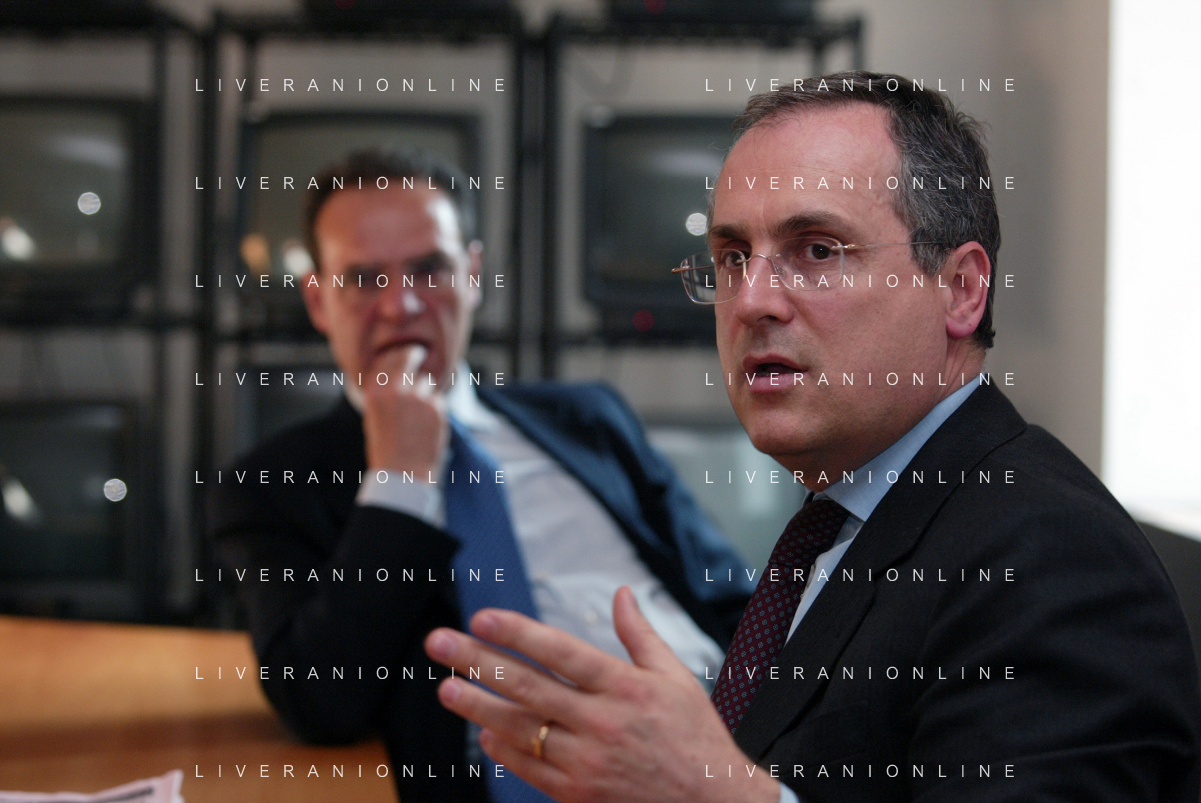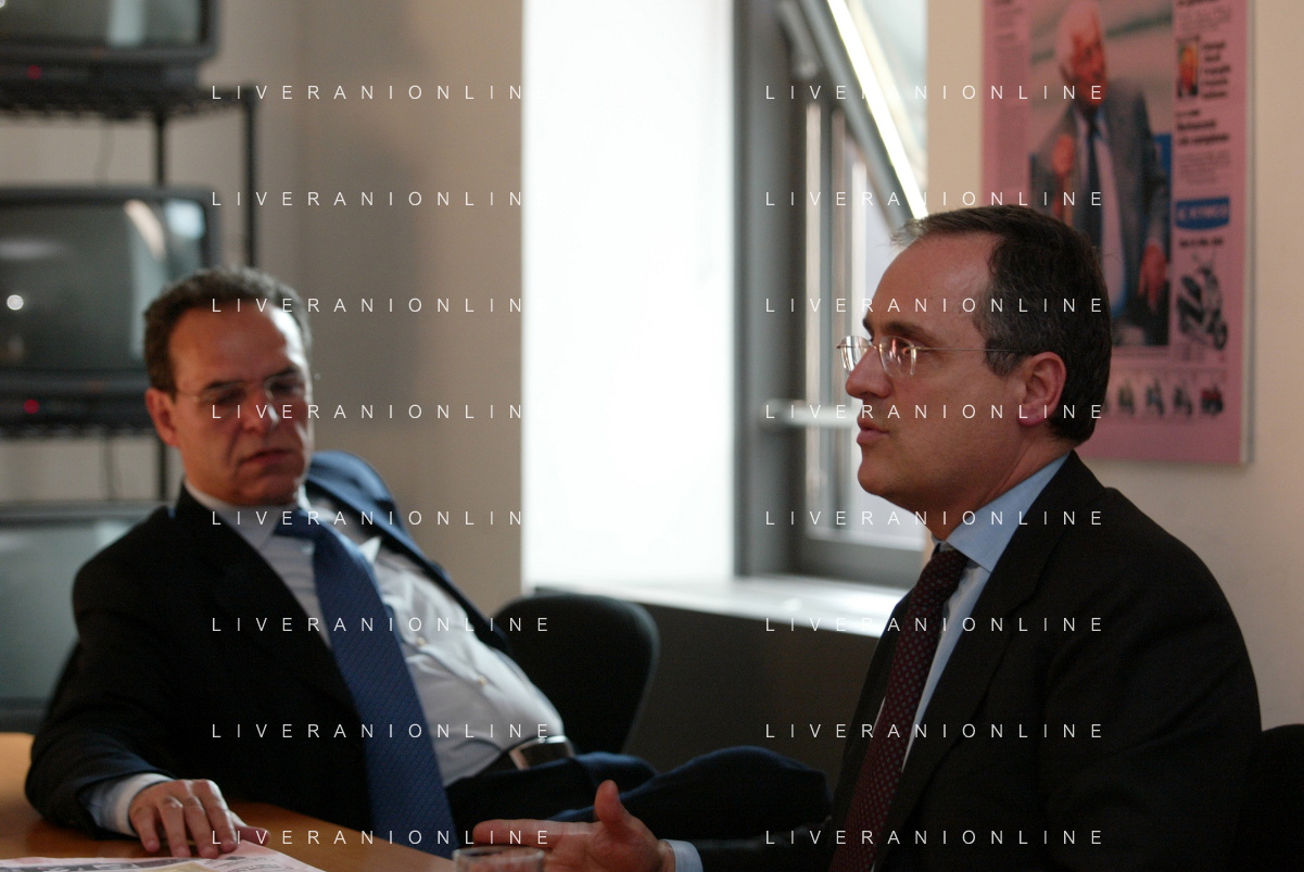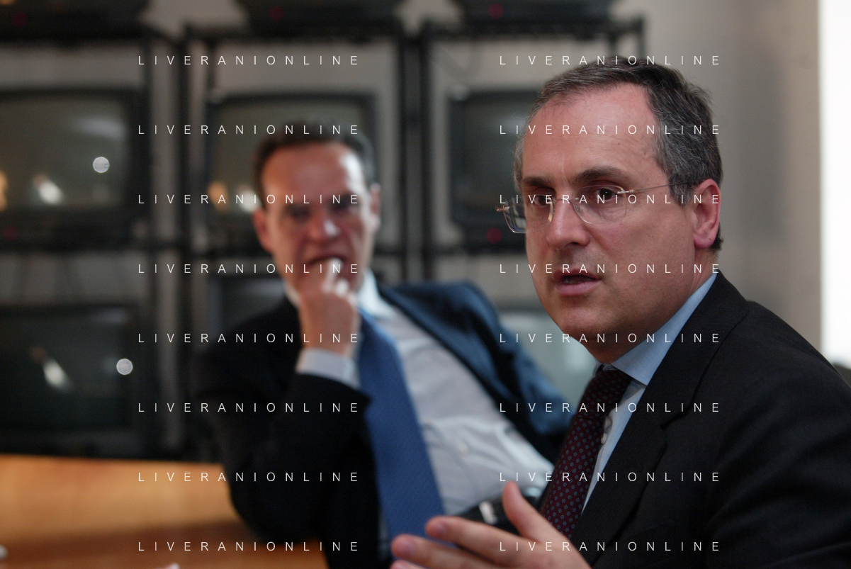 21-04-2005 MILANO REDAZIOE DELLA GAZZETTA DELLO SPORT OSPITE IL PRESIDENTE DELLA LAZIO CALCIO CLAUDIO LOTITO MELLA FOTO CLAUDIO LOTITO CON IL DIRETTORE DELLA GAZZETTA DELLO SPORT ANTONIO DI ROSA AG ALDO LIVERANI SAS