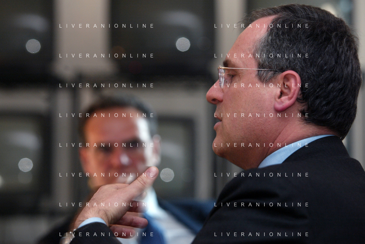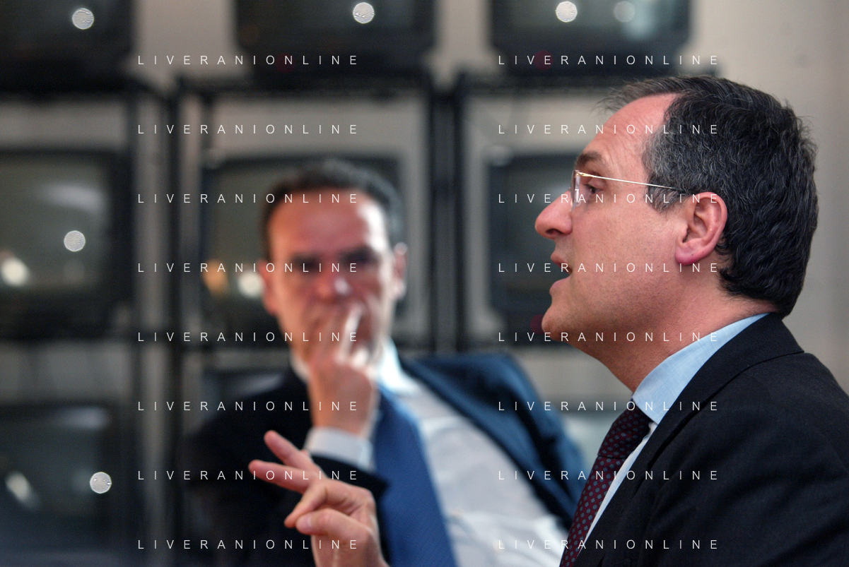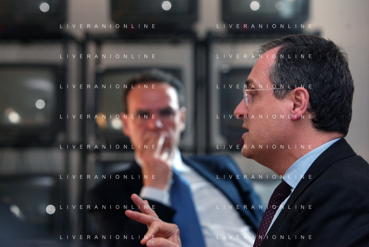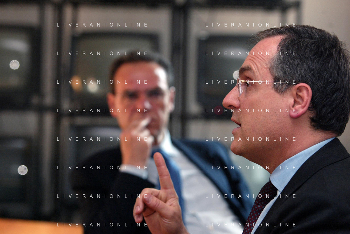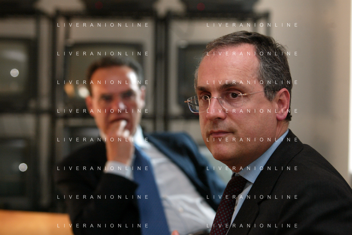 21-04-2005 MILANO REDAZIOE DELLA GAZZETTA DELLO SPORT OSPITE IL PRESIDENTE DELLA LAZIO CALCIO CLAUDIO LOTITO MELLA FOTO CLAUDIO LOTITO CON IL DIRETTORE DELLA GAZZETTA DELLO SPORT ANTONIO DI ROSA AG ALDO LIVERANI SAS