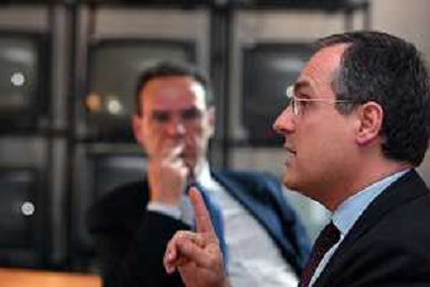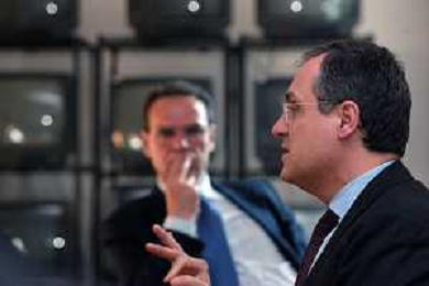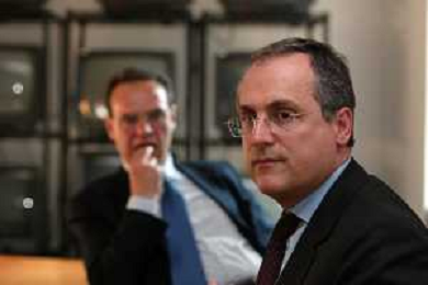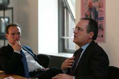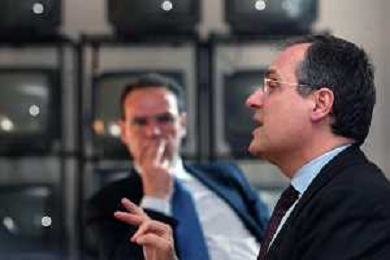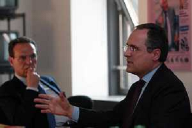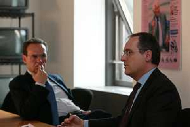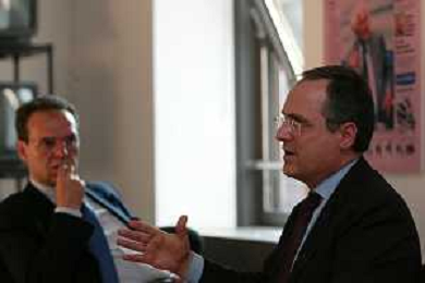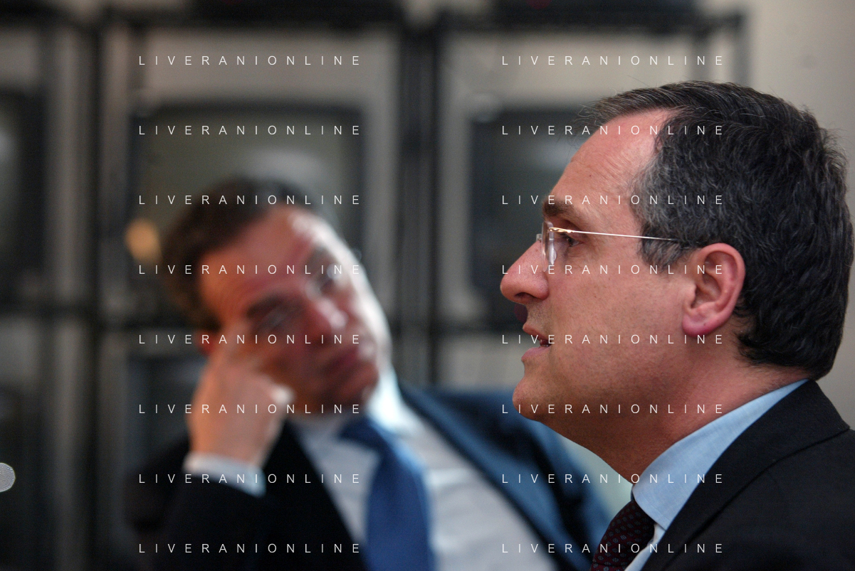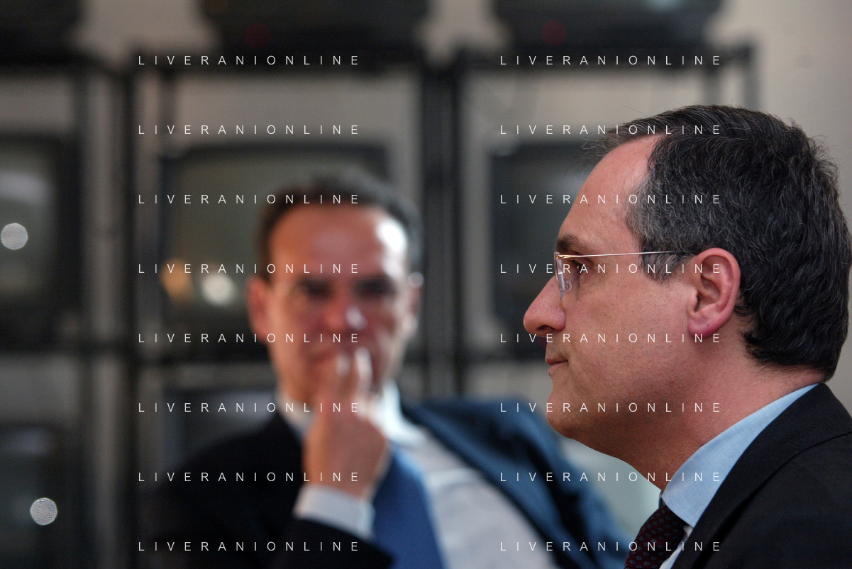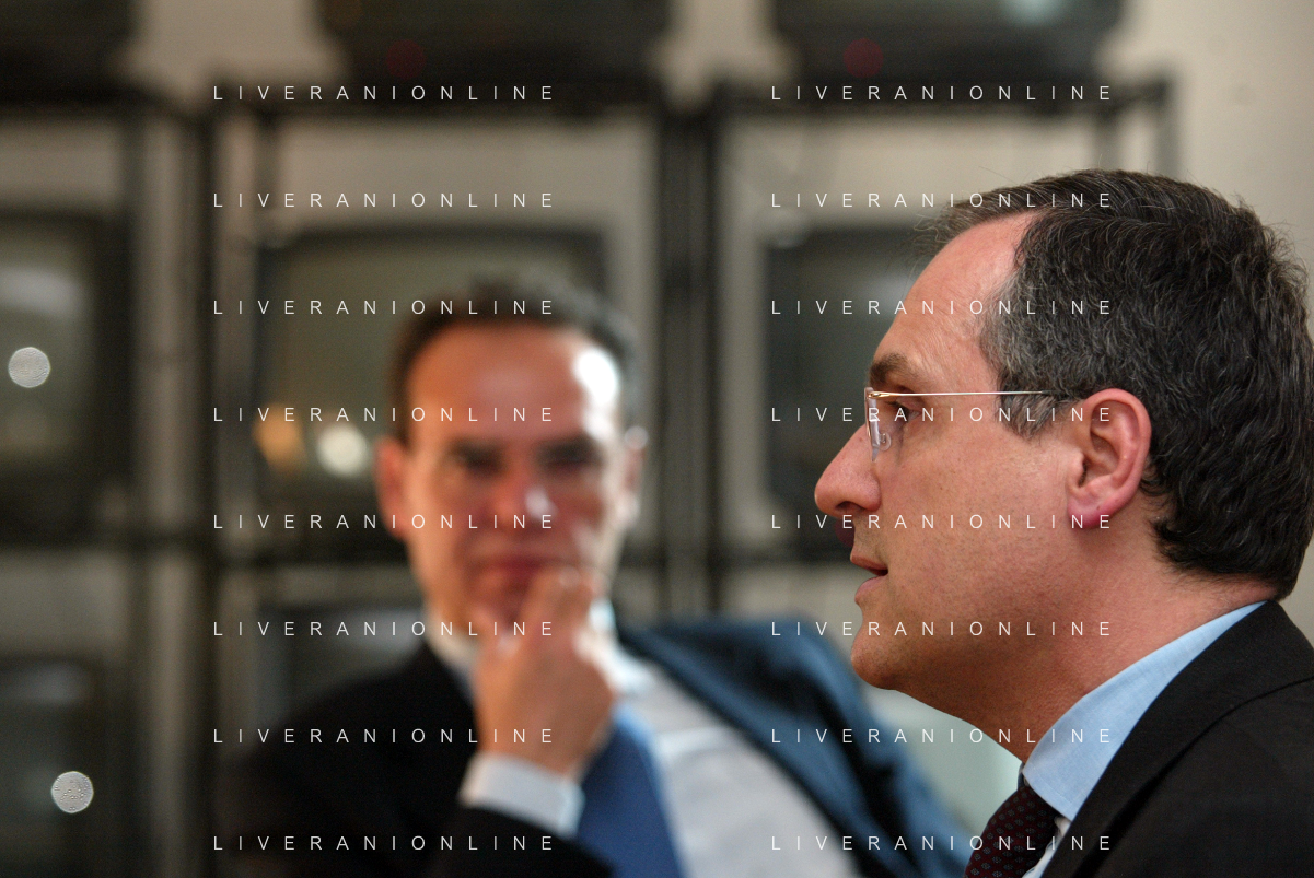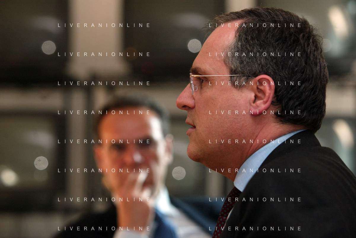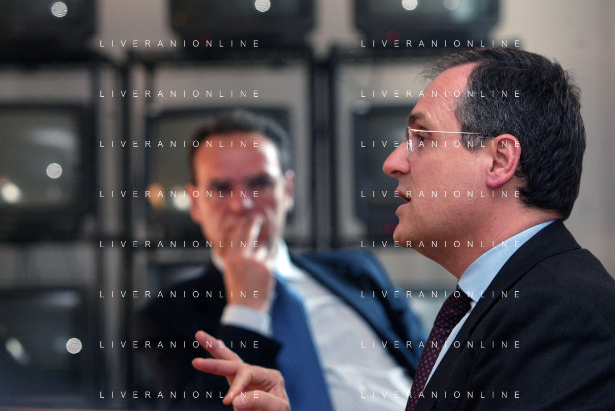21-04-2005 MILANO REDAZIOE DELLA GAZZETTA DELLO SPORT OSPITE IL PRESIDENTE DELLA LAZIO CALCIO CLAUDIO LOTITO MELLA FOTO CLAUDIO LOTITO CON IL DIRETTORE DELLA GAZZETTA DELLO SPORT ANTONIO DI ROSA AG ALDO LIVERANI SAS