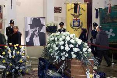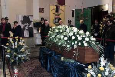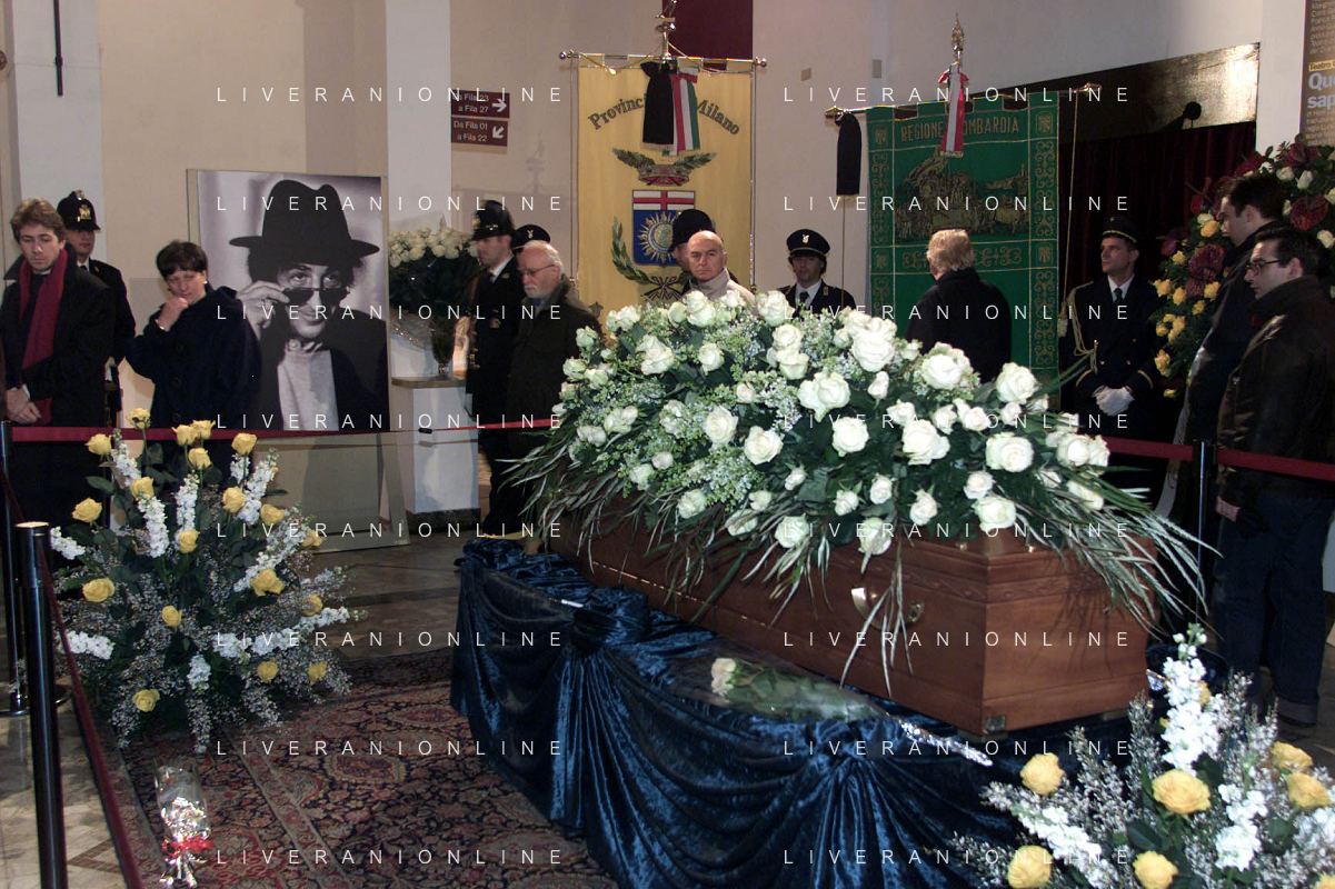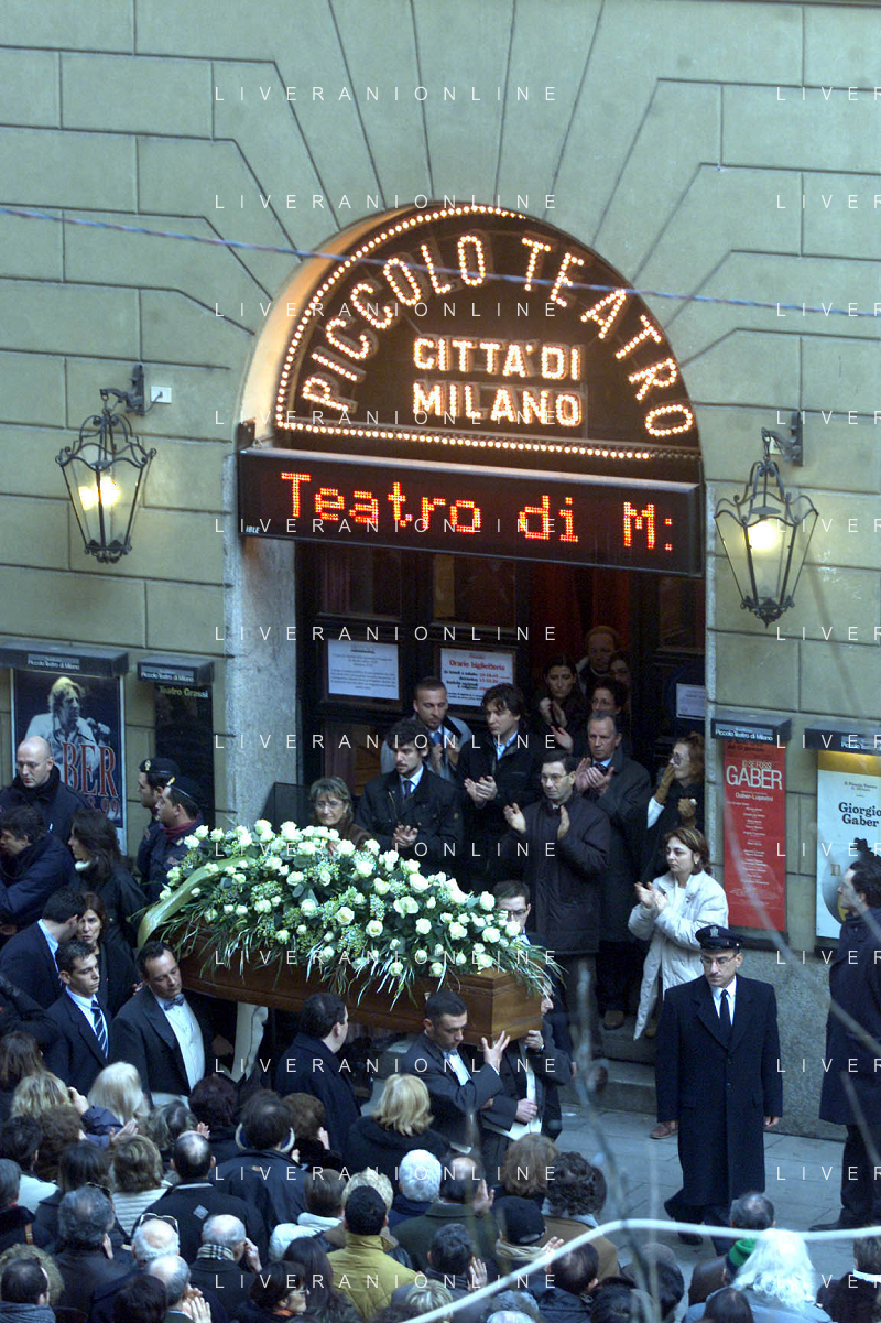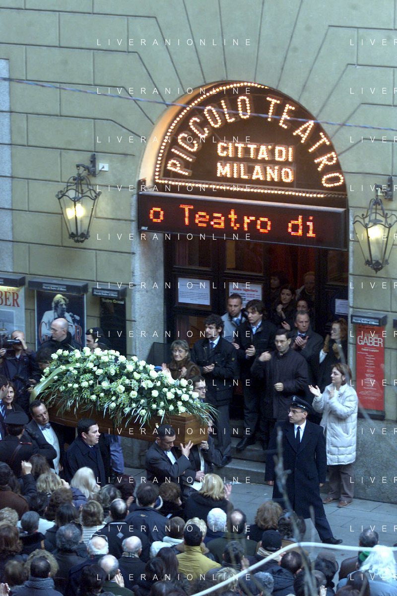 milano 03/01/03 piccolo teatro di via rovello dove è stata allestita la camera ardente per la morte di giorgio gaber nella foto feretro portato a spalla foto mario romano/ag. aldo liverani