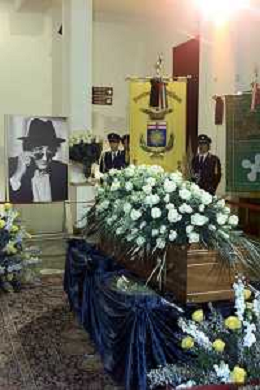 milano 03/01/03 piccolo teatro di via rovello dove è stata allestita la camera ardente per la morte di giorgio gaber nella foto feretro deposto nel carro funebre foto mario romano/ag. aldo liverani