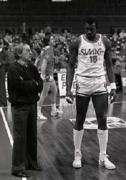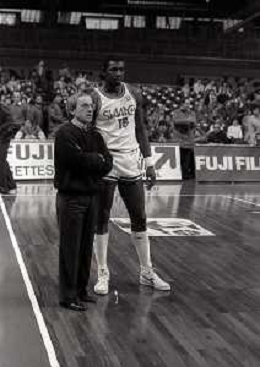NEG-1983-1984 MILANO CAMPIONATO DI BASKET SERIE A1 SIMAC MILANO-BIC TRIESTE NELLA FOTO ANTOINE CARR E DAN PETERSON AG ALDO LIVERANI SAS