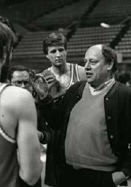 NEG-1983-1984 MILANO SIMAC MILANO-CIBONA ZAGABRIA COPPA CAMPIONI NELLA FOTO DAN PETERSON ALLENATORE SIMAC MILANO AG ALDO LIVERANI SAS