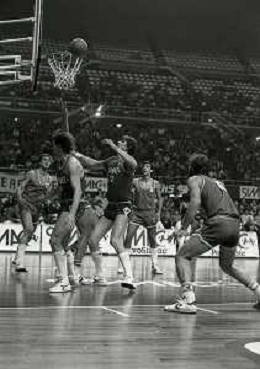 NEG-1983-1984 MILANO SIMAC MILANO-CIBONA ZAGABRIA COPPA CAMPIONI NELLA FOTO AZIONE DI GIOCO AG ALDO LIVERANI SAS