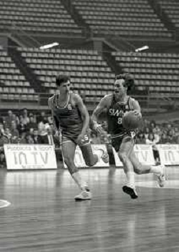 NEG-1983-1984 MILANO SIMAC MILANO-CIBONA ZAGABRIA COPPA CAMPIONI NELLA FOTO MARCO LAMPERTI AG ALDO LIVERANI SAS