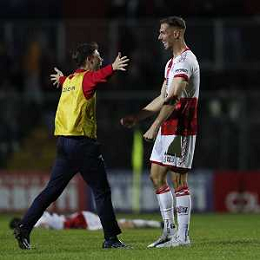 ZCP - 07/05/2024 Gubbio Rimini gara play off di lega pro girone B - nella foto: Esultanza Cernigoi Iacopo(Rimini fc) dopo il goal ©Claudio Zamagni/Agenzia Aldo Liverani